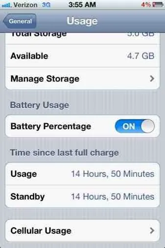 I'm at 13.5 hours stand by with 4 hours usage and I'm sitting at 61%. I used my phone for 7 hours yesterday and was at 40% before bed.