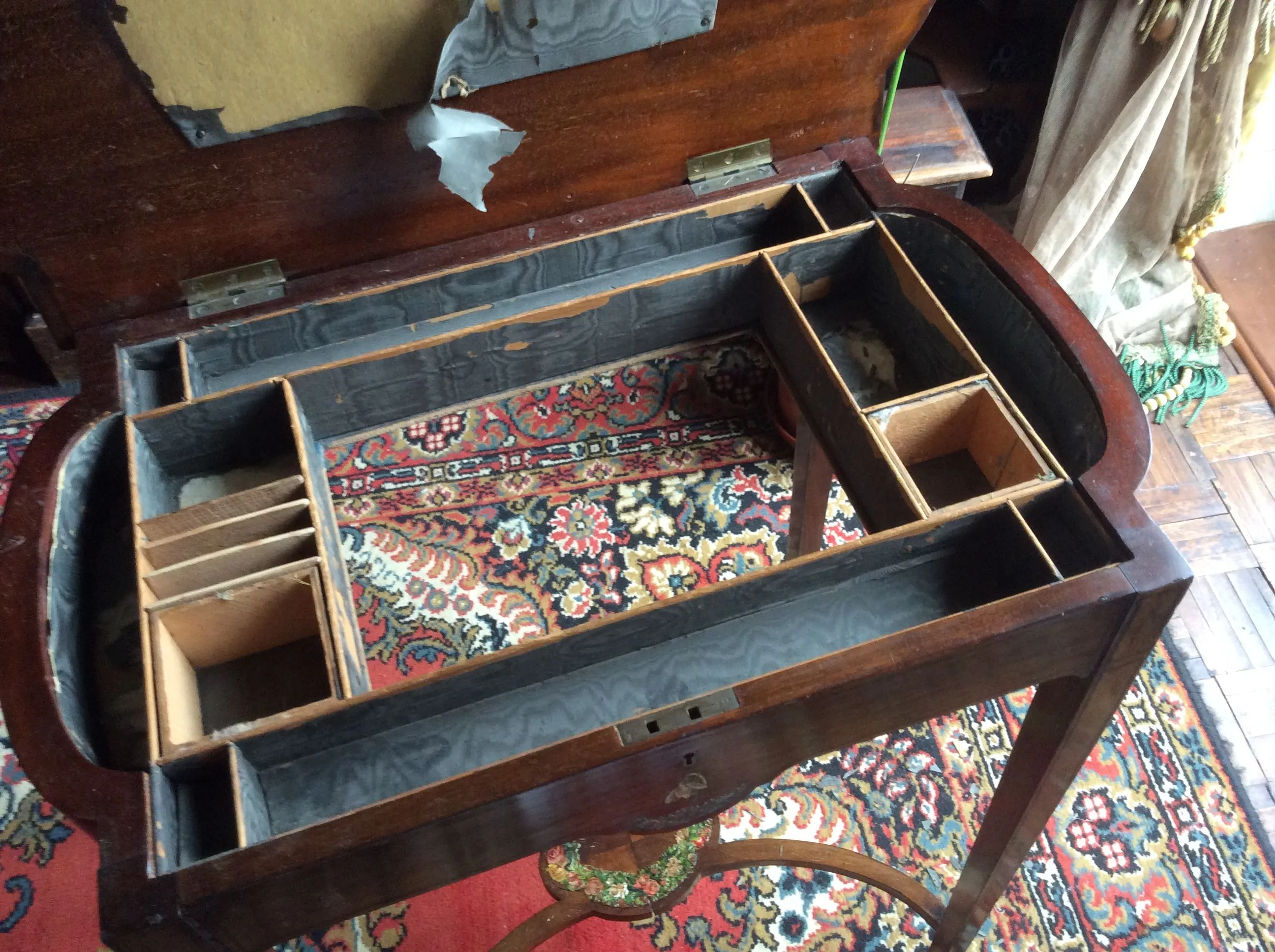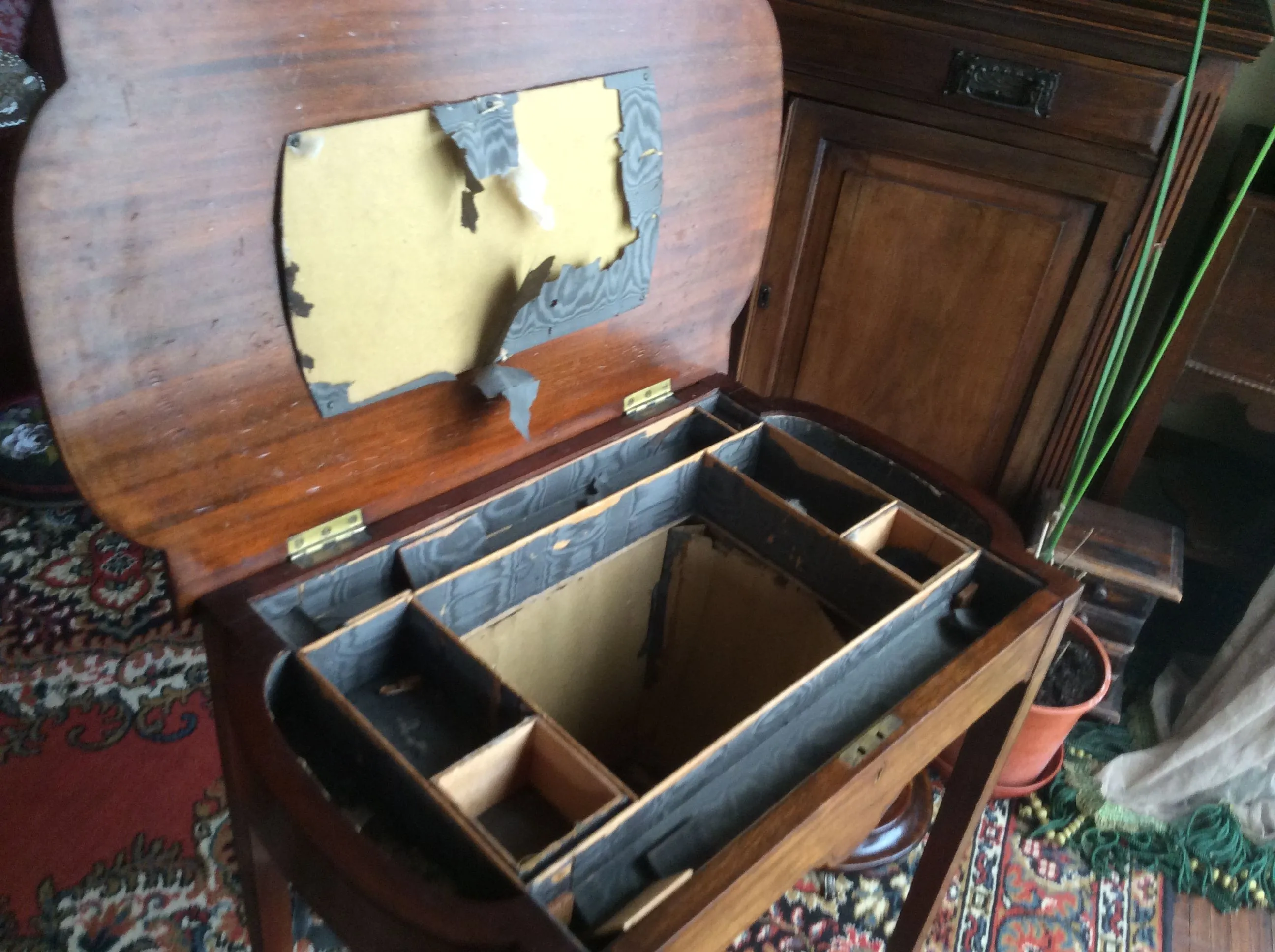 A most excellent restoration! Thanks for letting us see the photos.You might like to see this sewing table I restored a little while ago Ard, I used a victorian dress for the fabric and victorian paper scraps for the top.