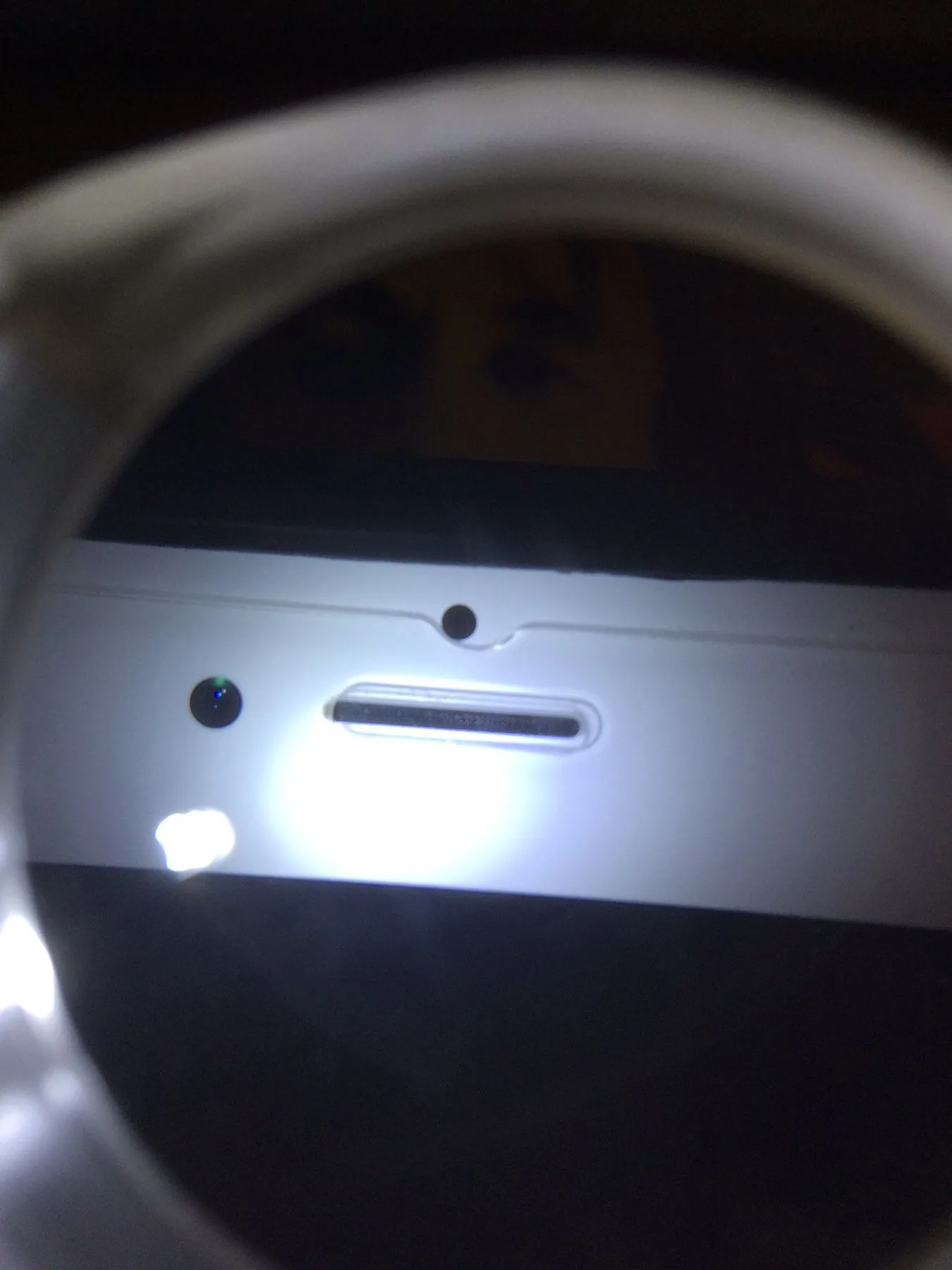 I got my iPhone 7 replaced pervious one had same issue the ear speaker the one near the front facing camera when I shine light to it there something shinny that shines not sure if it normal ??