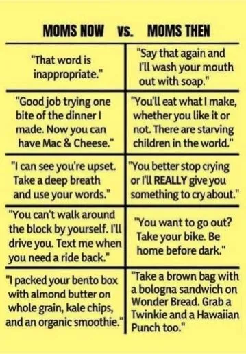 You have got to be one of my brothers so which one are you? Mom said everything in the second column including things that aren’t such as perfectly acceptable responses like, “because I said so” or “Don’t say ____. Don’t ask for ____ and don’t touch ____”.