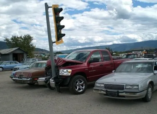 Well, the traffic light is still with the truck, that never happens as the traffic lights belong to the city/county and would not accompany a vehicle to a salvage yard. Secondly, traffic lights are never placed that close to the ground (it would invite vandalism and inhibit the view from vehicles further away). I'm not sure how that traffic light got there, but no one, not even firefighters, will cut a traffic light and send it along with the vehicle.