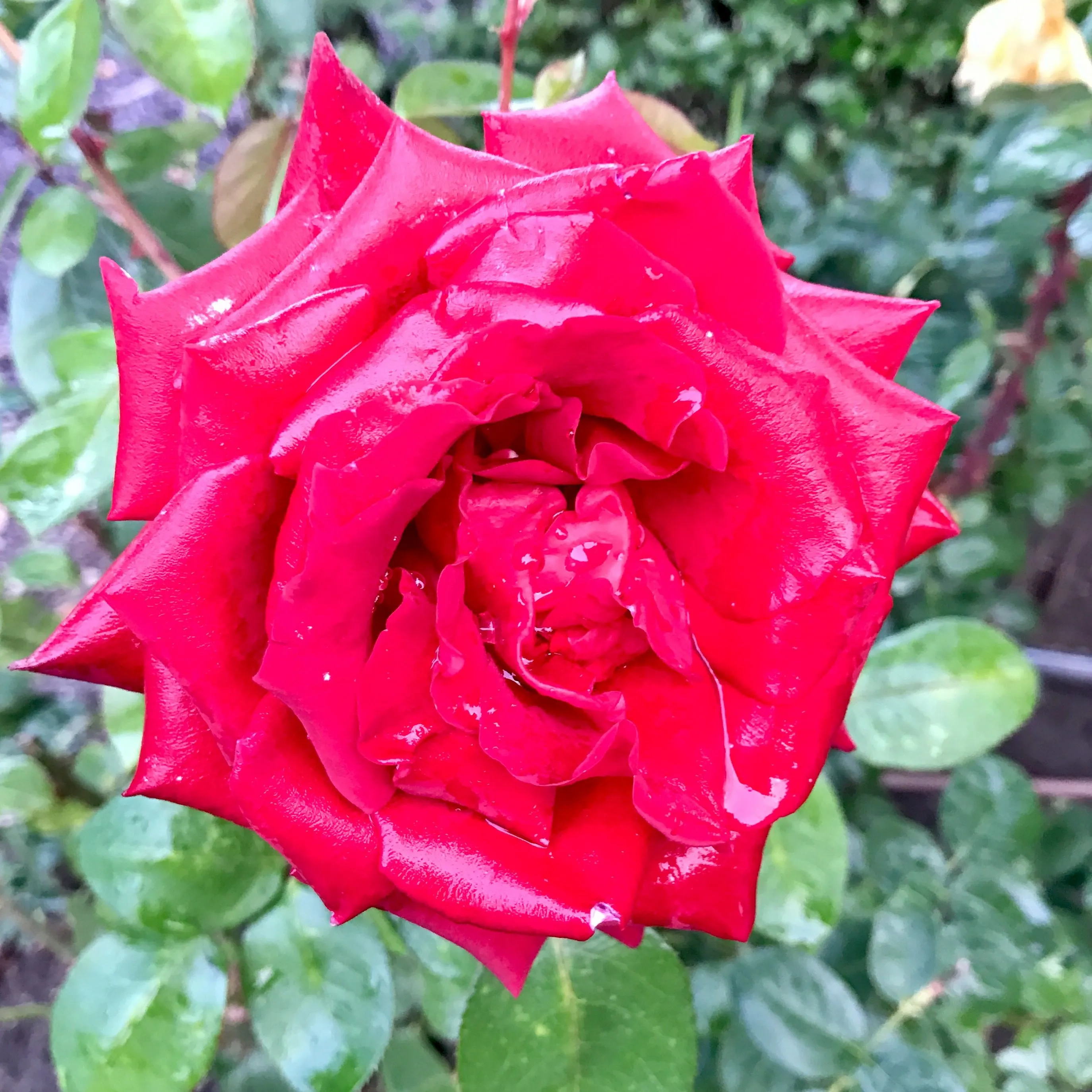 They look great with the raindrops on them.Two different roses. The camera decided about the background on the second photo, no idea why. It should have been grass everywhere.