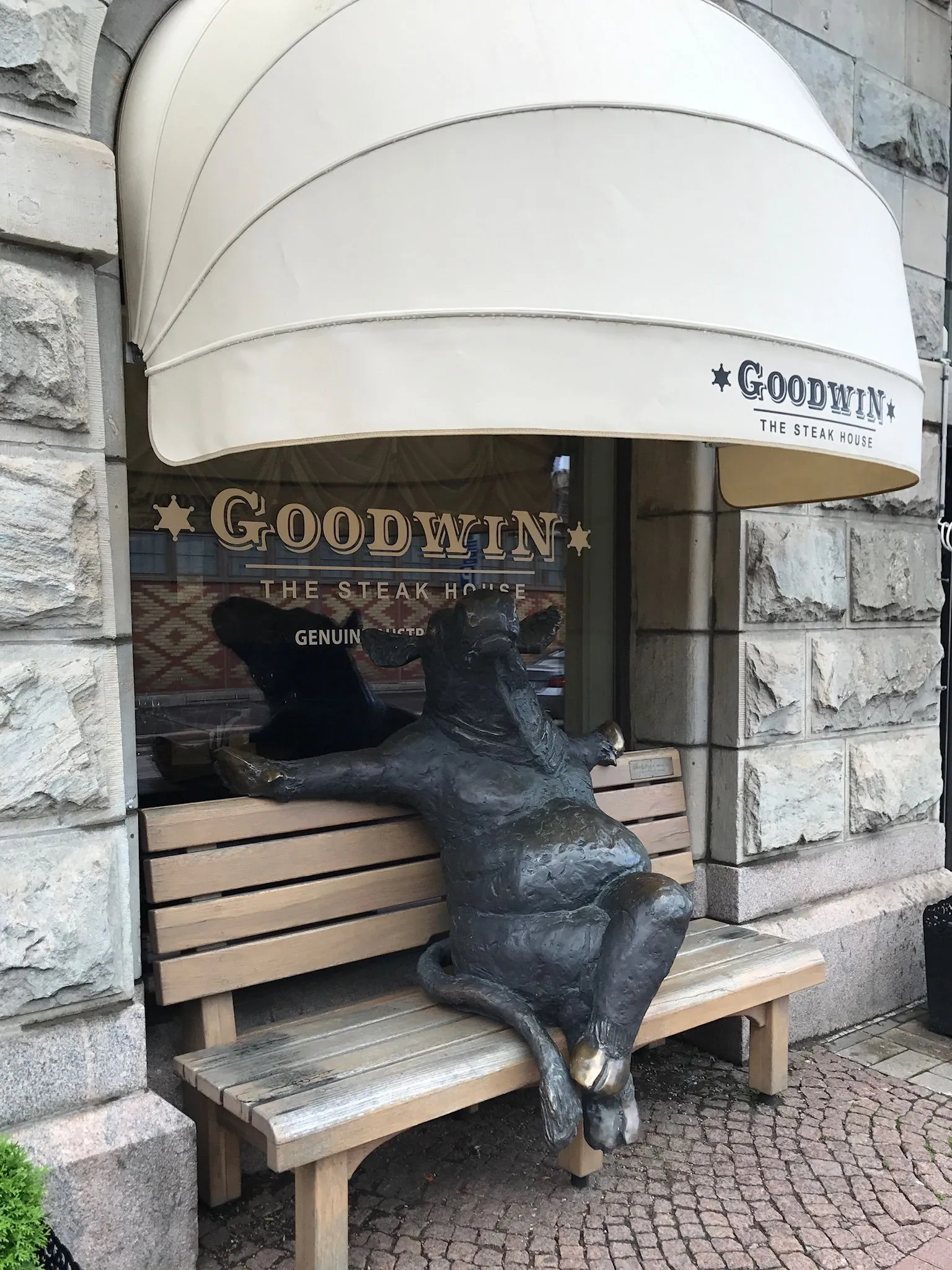 No. It was too early when I saw it.What a great statue! Did you stop in for a bite?
