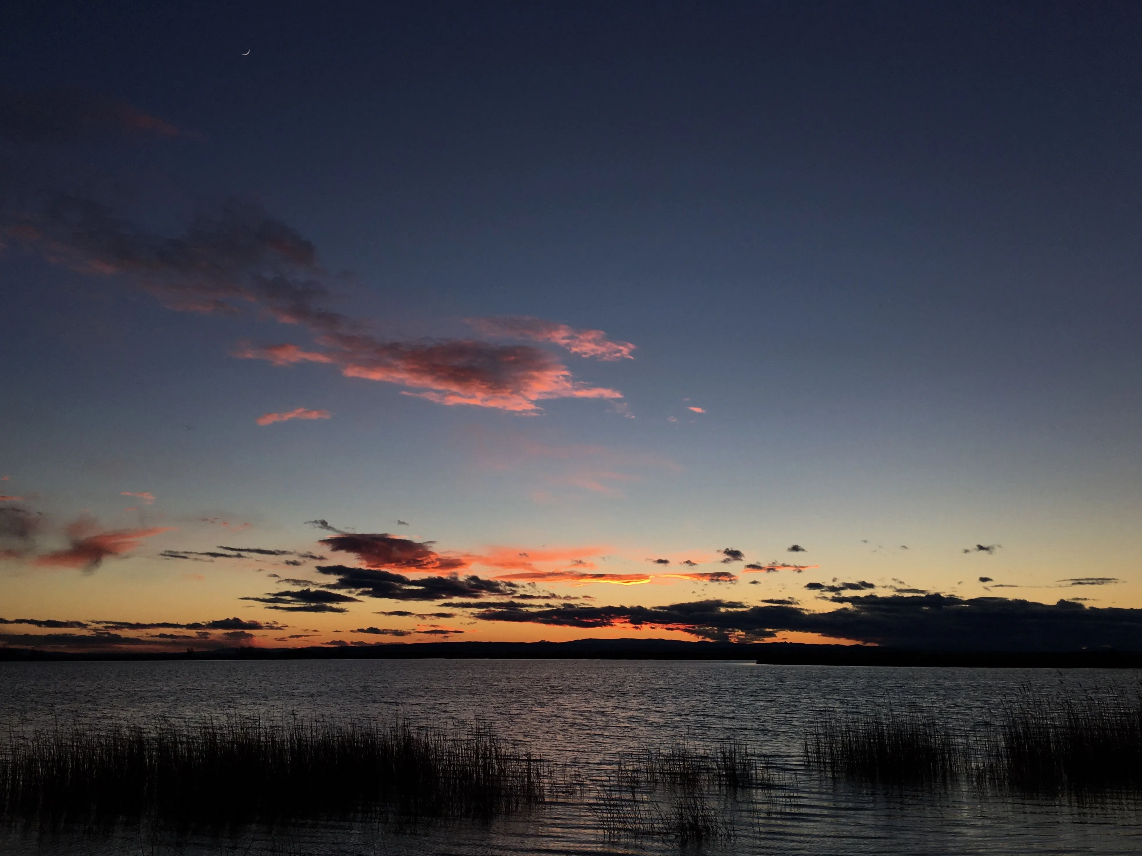 You've captured some very nice cloud effects. It's one of your better sunset shots.After sunset, moon high up in the sky