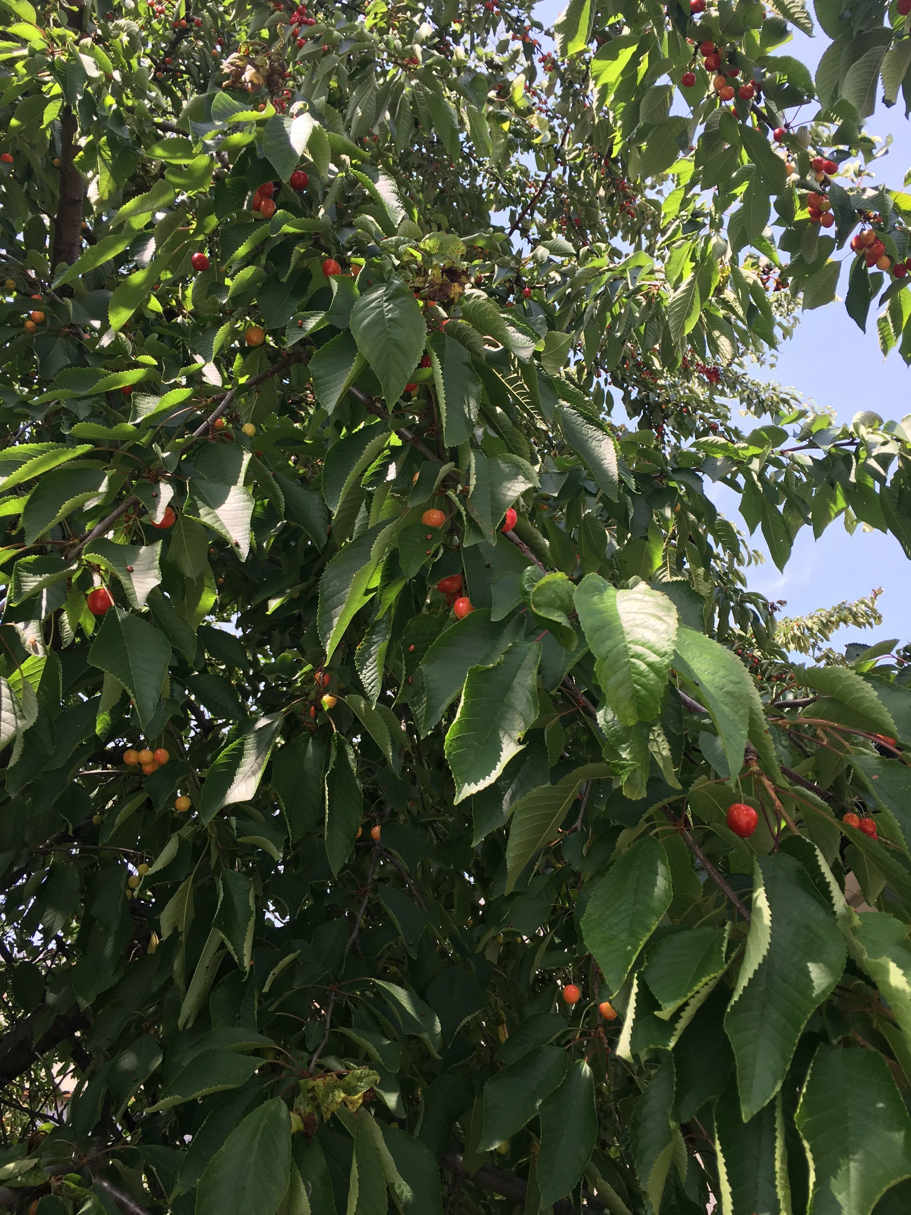 They have to be darker to be ripe. We didn't sample them yet. The cherries near the ground will be eaten by our students, and we'll try to sample the rest before birds find out they're ripe.I see that a large number of the cherries are ripe already. Have you sampled them yet?