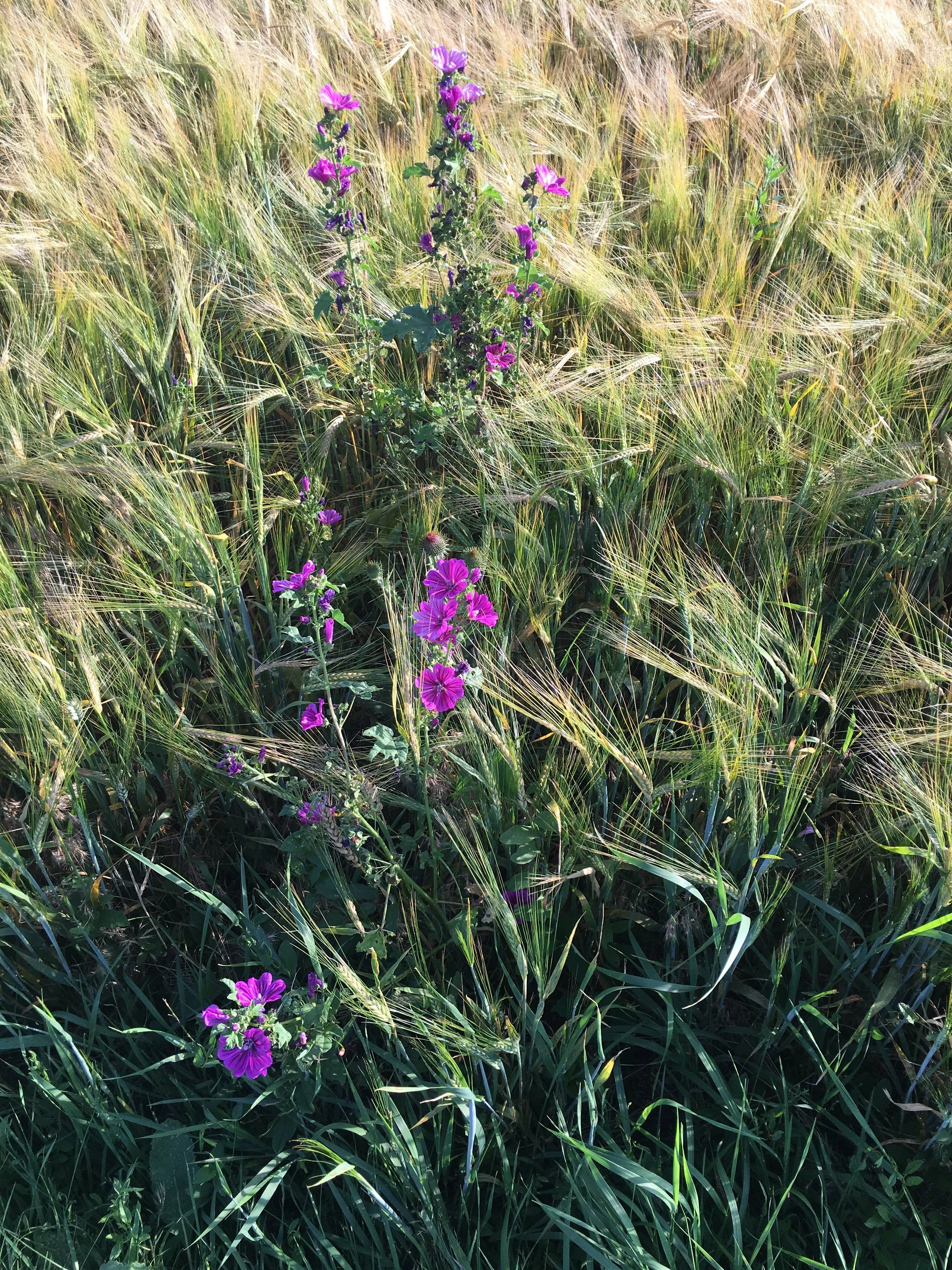 The flowers make for a nice colourful display. Is the barley used for beer production?Barley with flowers