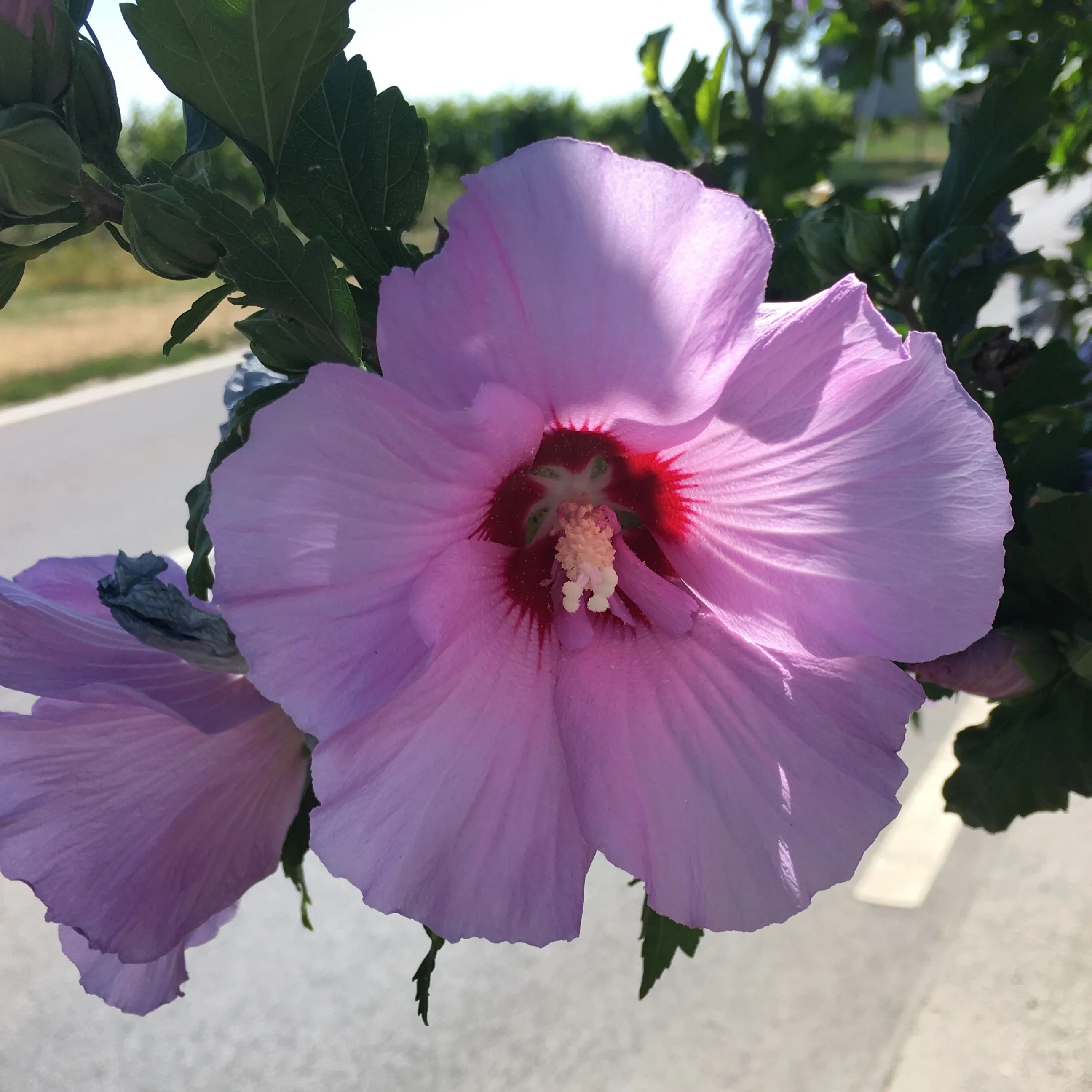 These are hollyhocks I usually see when riding my bicycle. As I don't stop to take photos during these rides, I stopped and took pictures when I came home from the supermarket today.