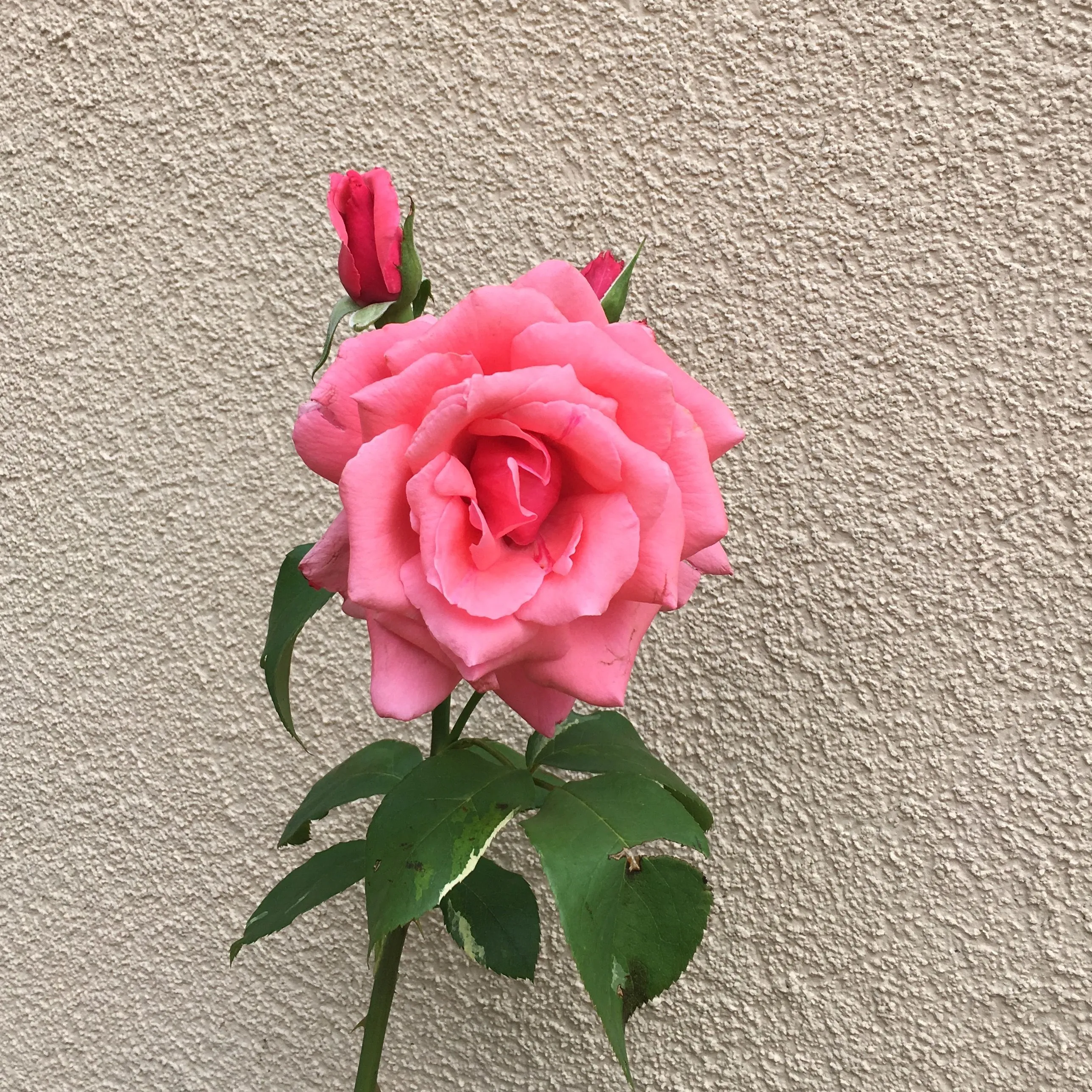 The stucco wall makes the perfect background for a beautiful rose.