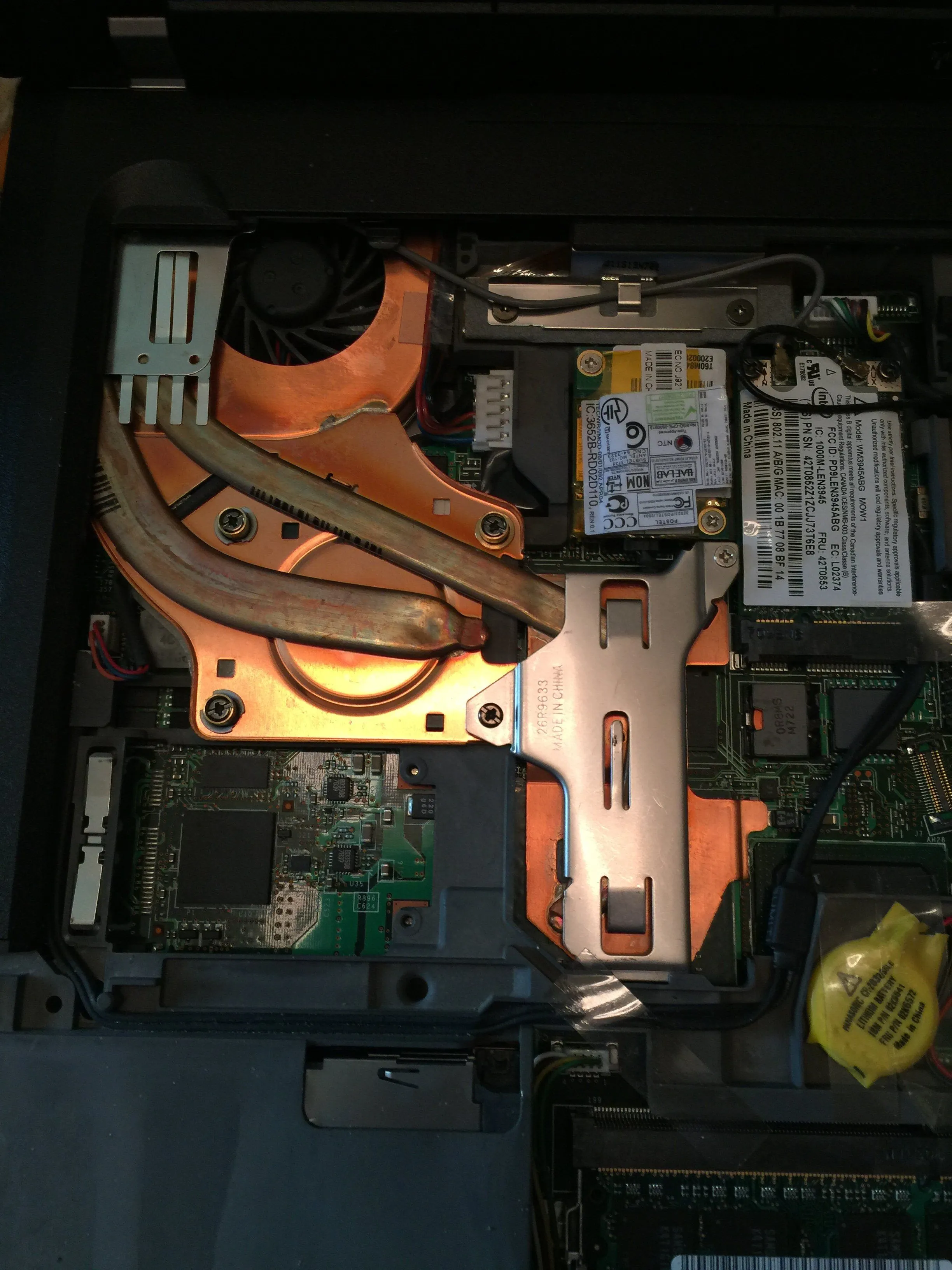 Looks like new.The massive copper heat sink and fan unit from my ThinkPad T60. The CPU of the T60, unlike modern MacBooks, is upgradable.