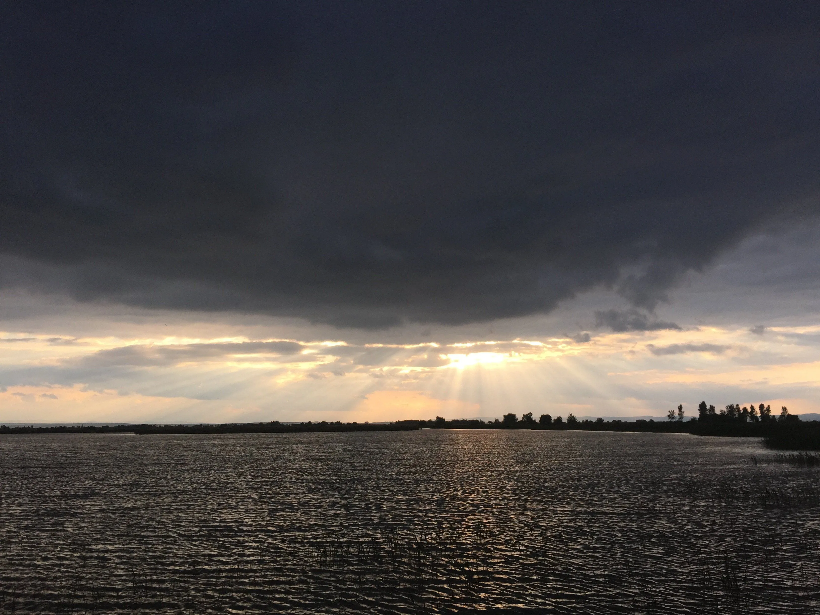 I like the spreading rays of the sun coming from behind the clouds.