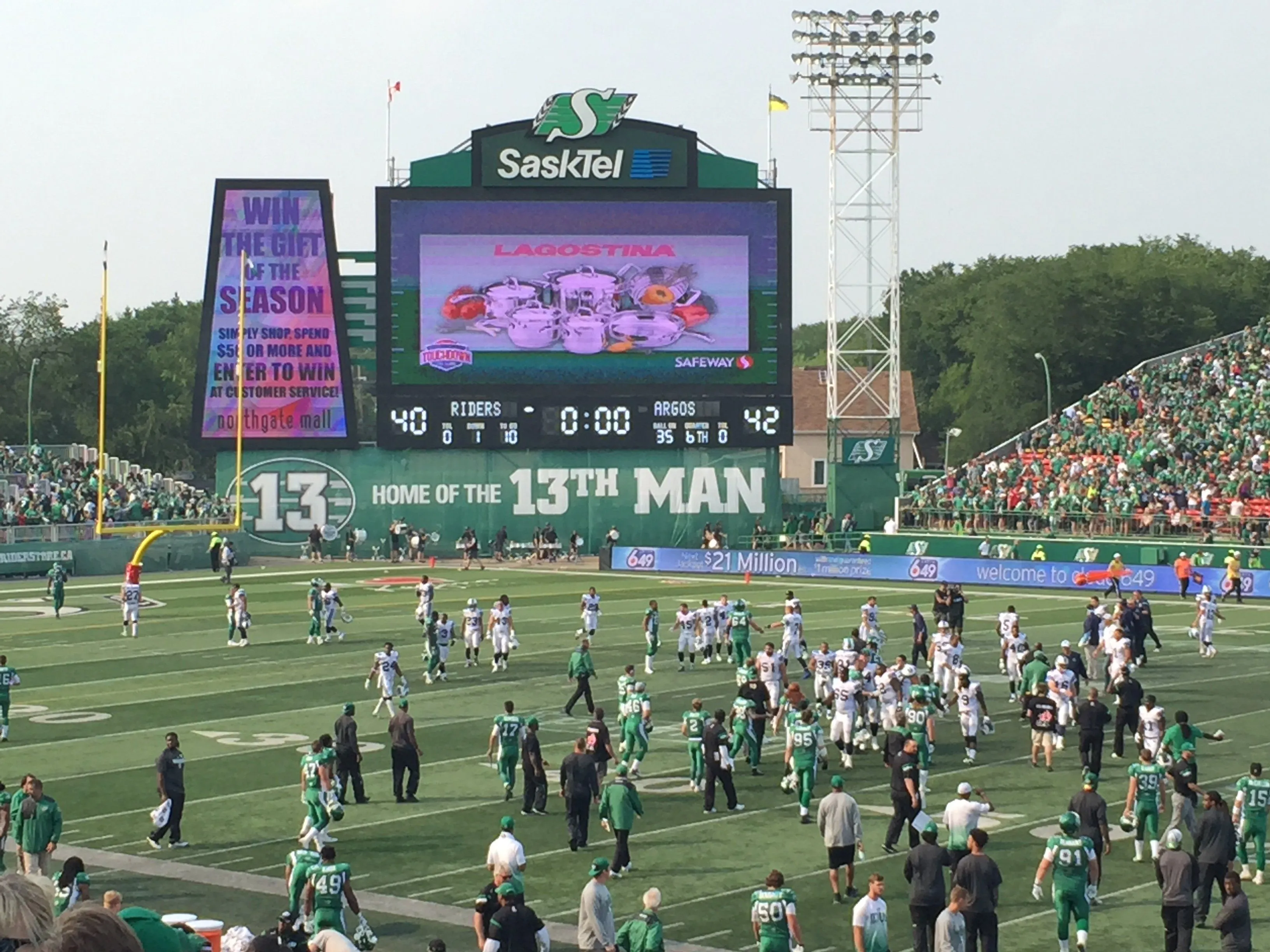 Too bad!Unfortunately your crossed fingers didn't help. The Roughriders lost 42-40 in double overtime.