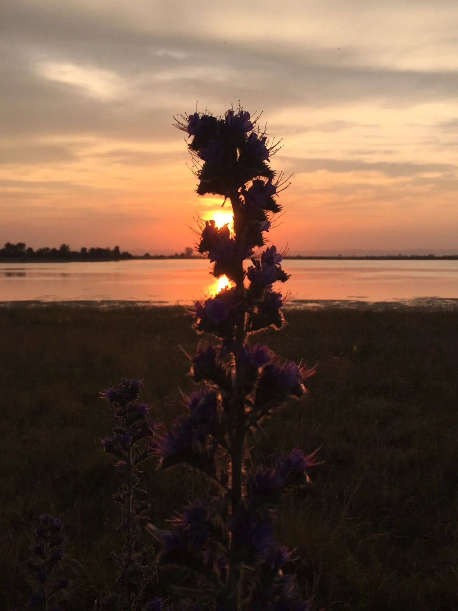 Great picture! The light from the setting Sun provides just enough light to reveal a hint of blue in the plant.Glowing blueweed