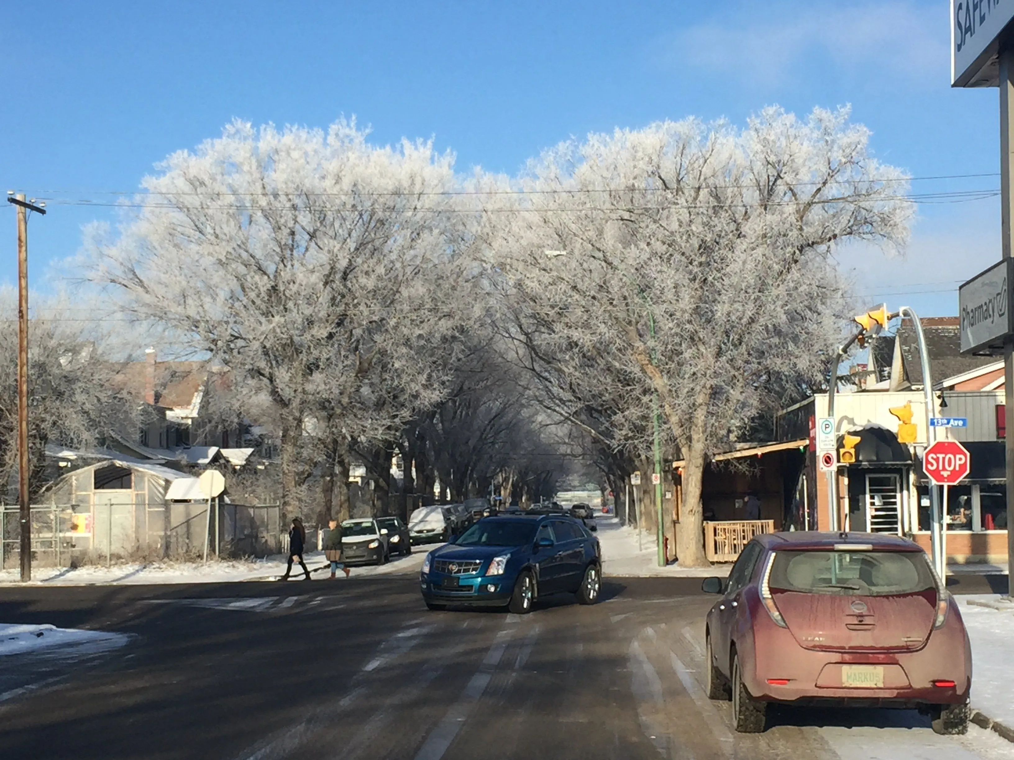 Especially when you're walking down the street with those frost covered branches arching over your head.A lovely sight, as long as the frost stays on the trees.![]()