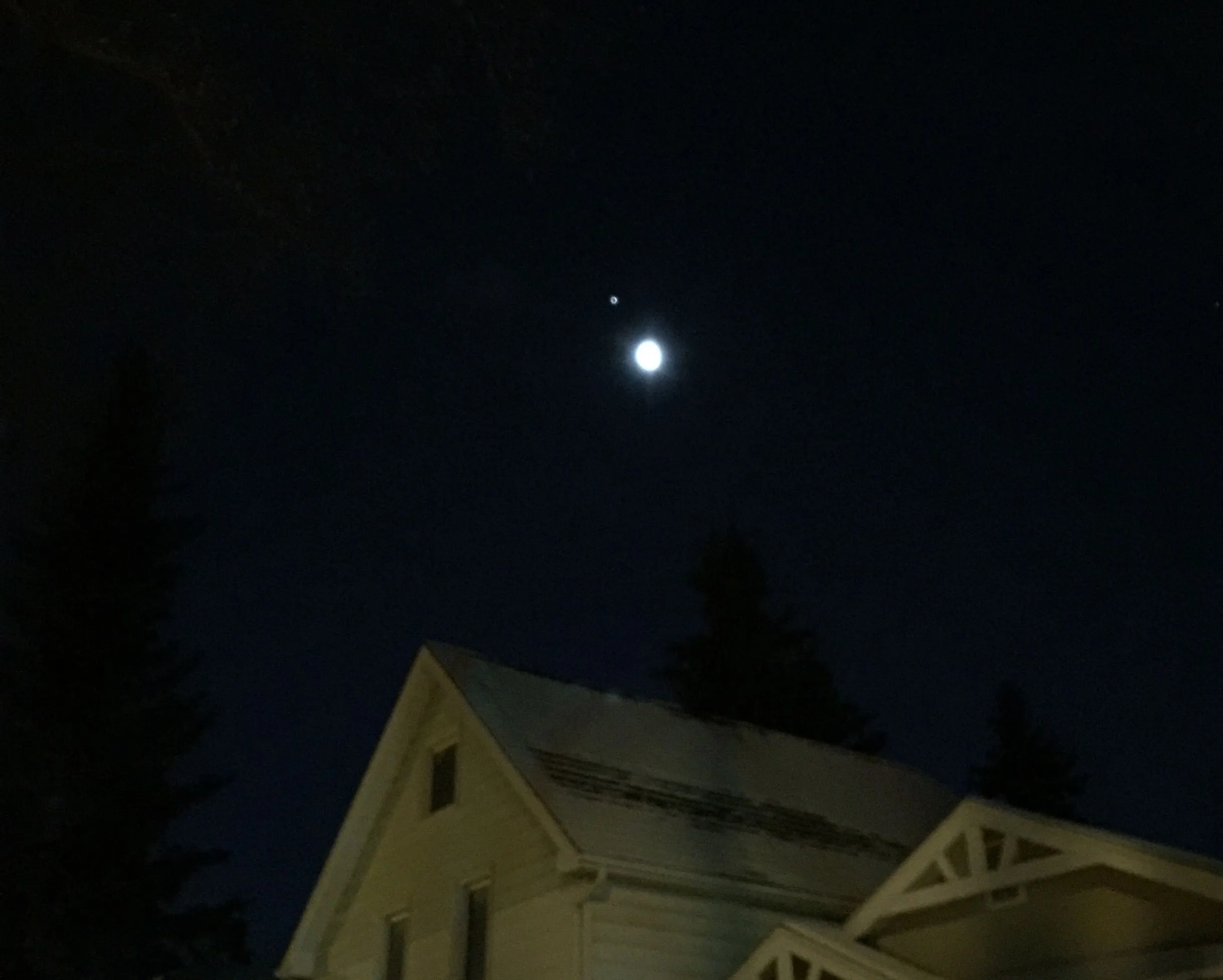 Jupiter looks huge, even with the Moon next to it.Jupiter and the Moon above the roof of my house.