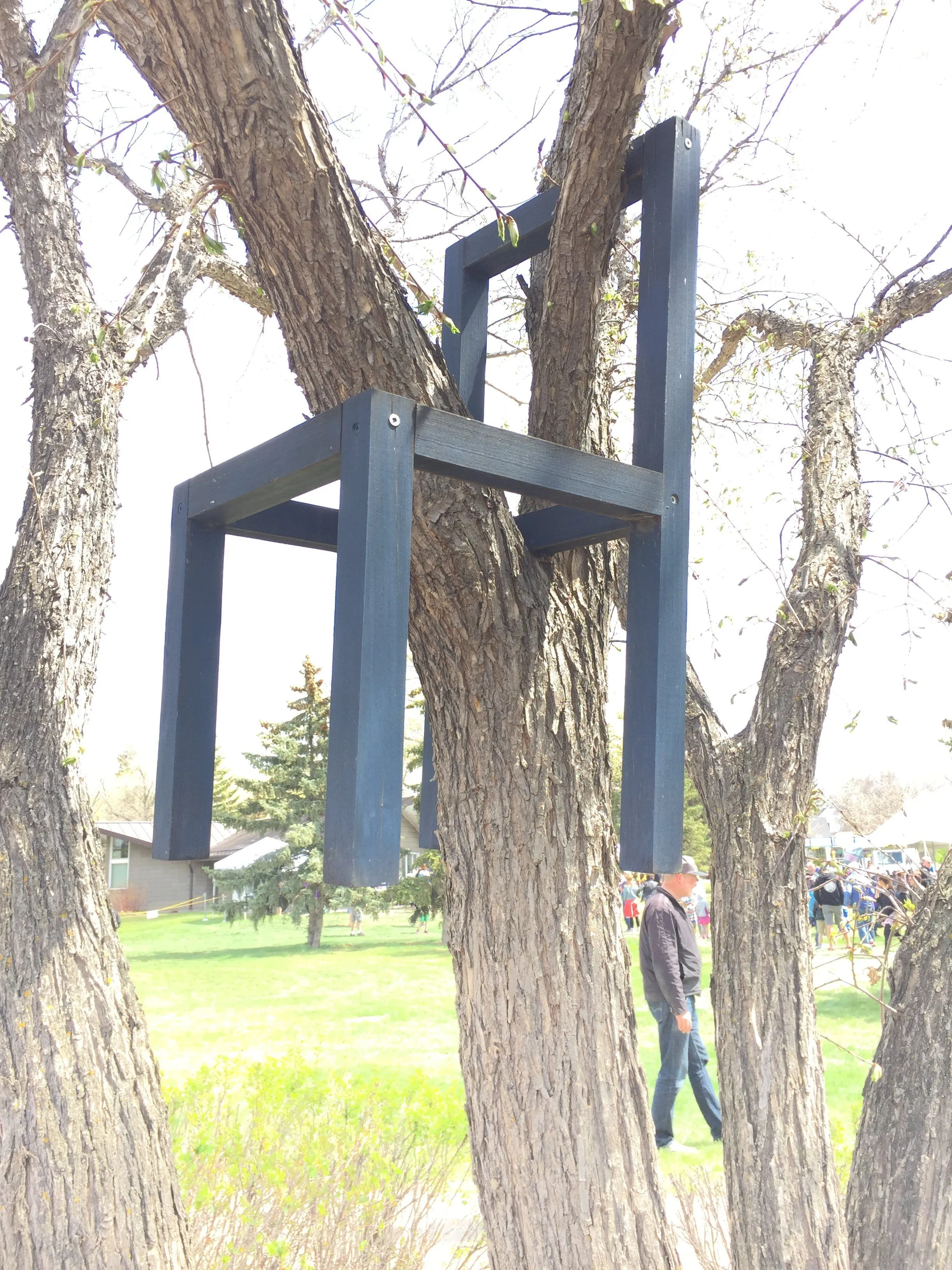 It must have been a challenge to put the chair into the tree.