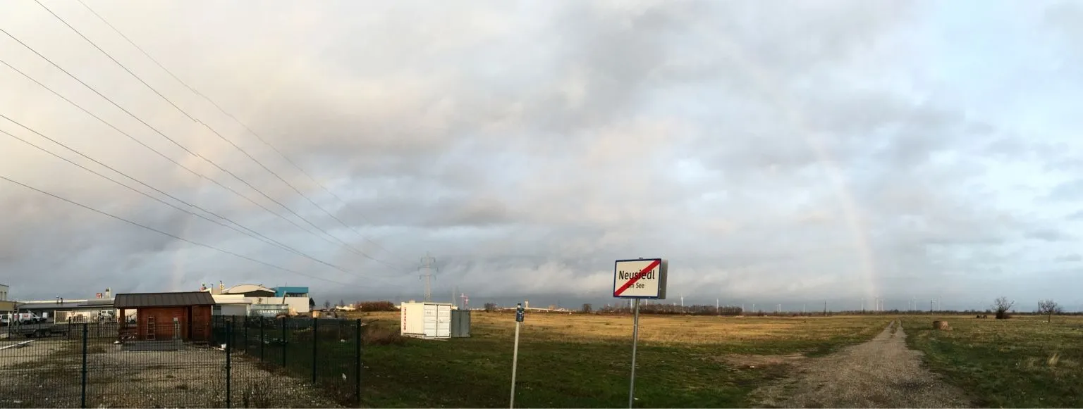 It was a complete rainbow, so I tried to take a panoramic photo to get all of it: