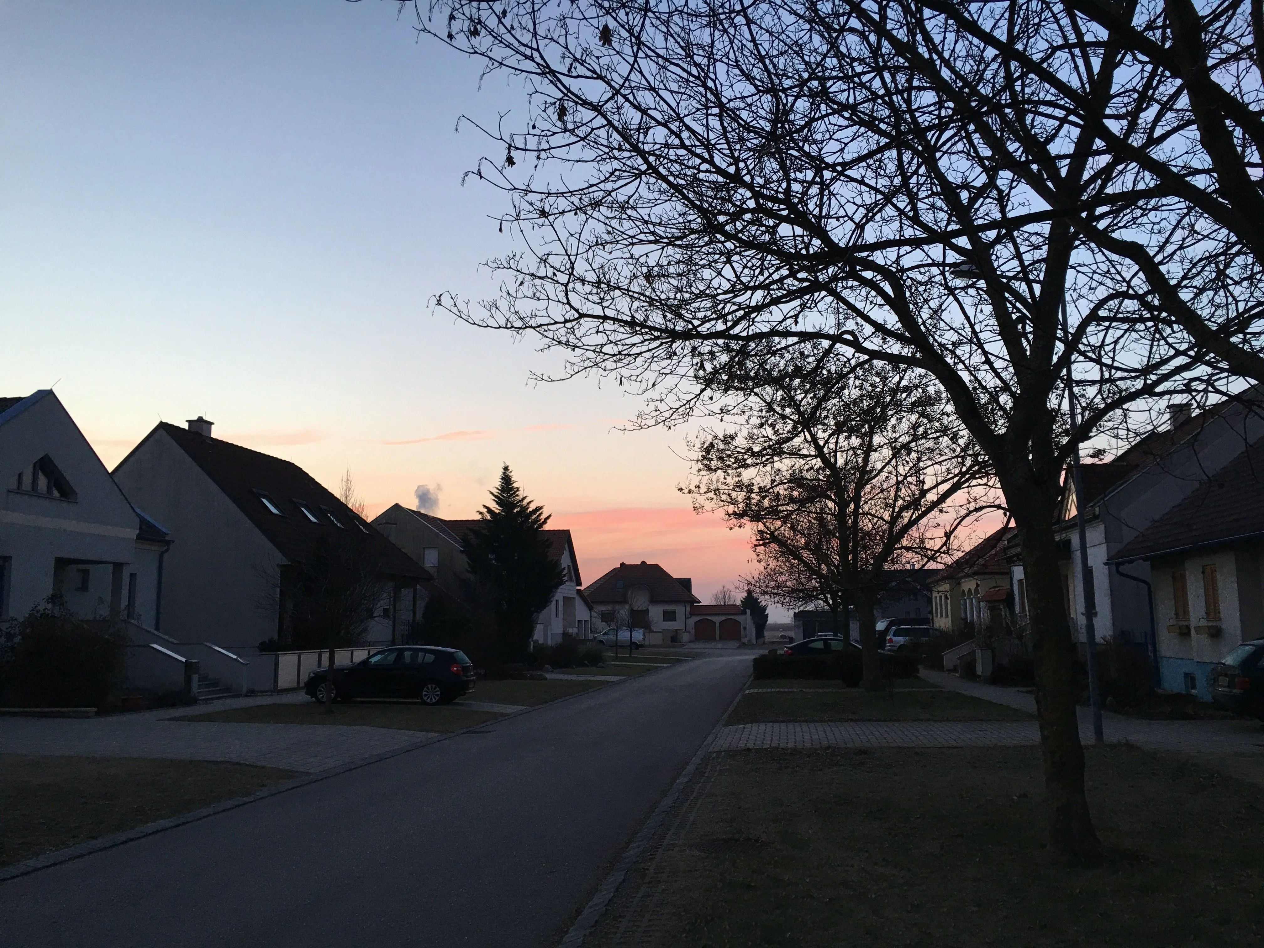 The other features if your picture, such as the silhouetted tree branches, more than make up for the sunrise colours.Today's sunrise. Not as spectacular as last time, still nice, I think