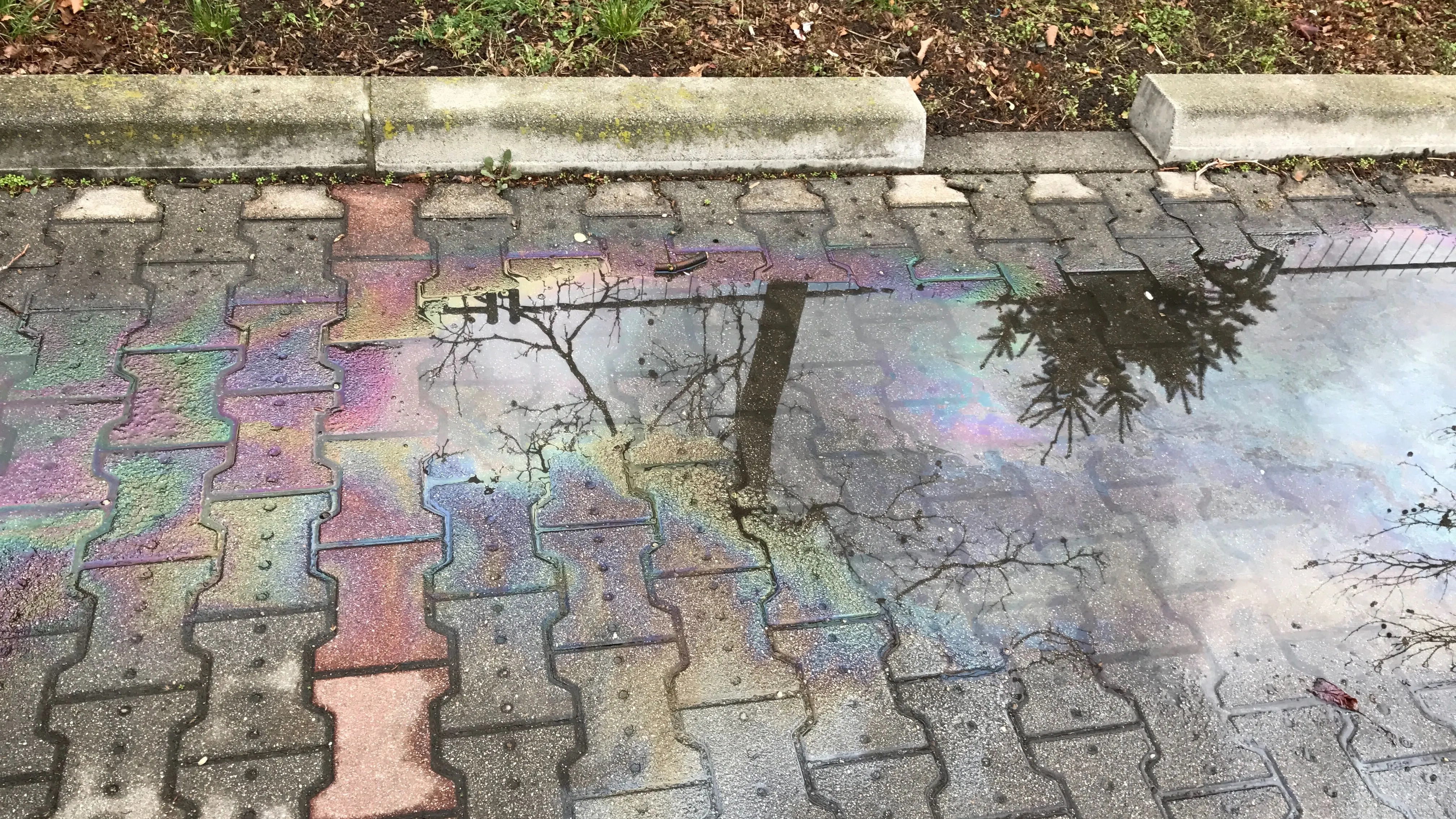 Looks like spilled fuel on the pavement made for some lovely rainbow colours in the puddle.