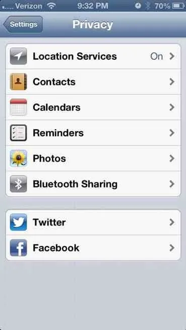 Problem is, after I click on Privacy, I don't get photos - anywhere. I get several subsections: