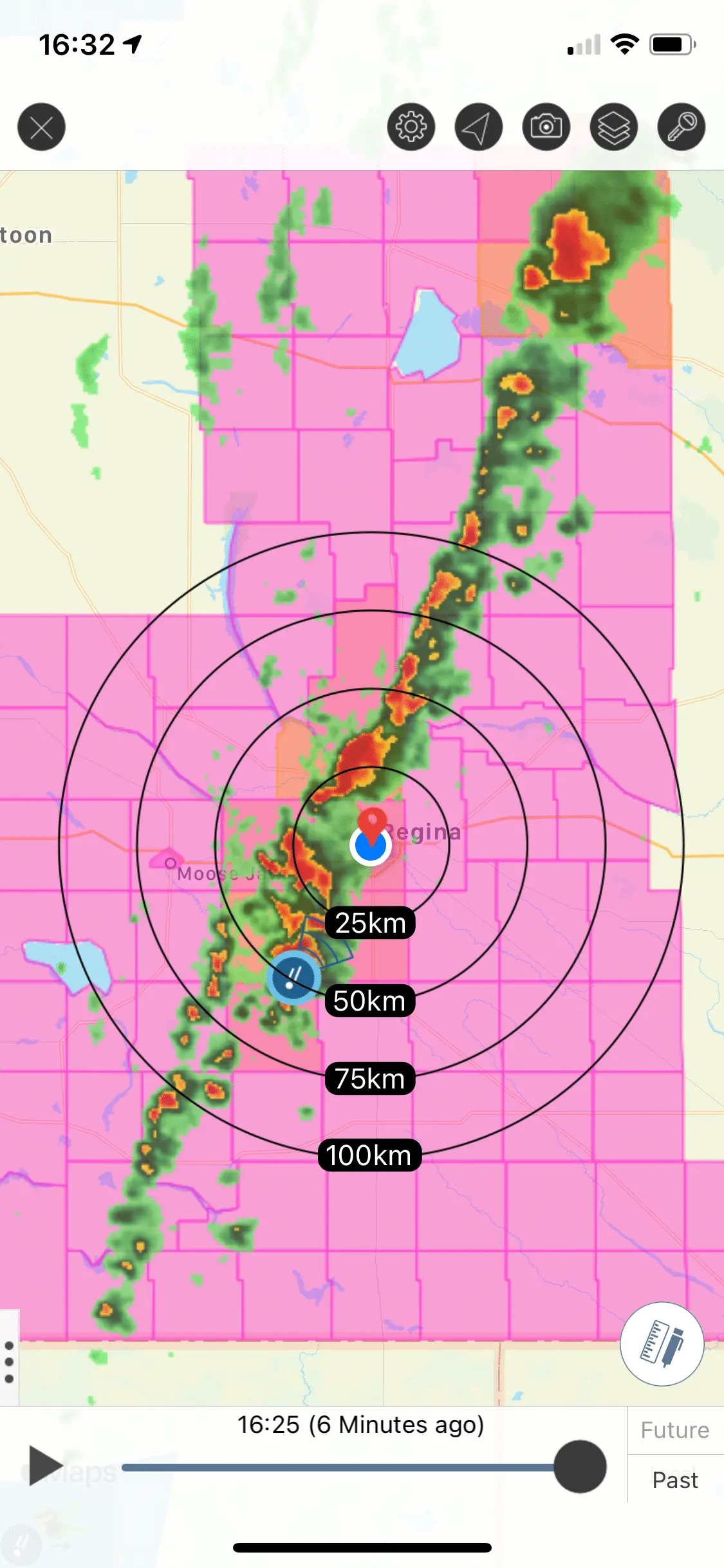Here’s the radar showing a line of thunderstorms moving through my area.