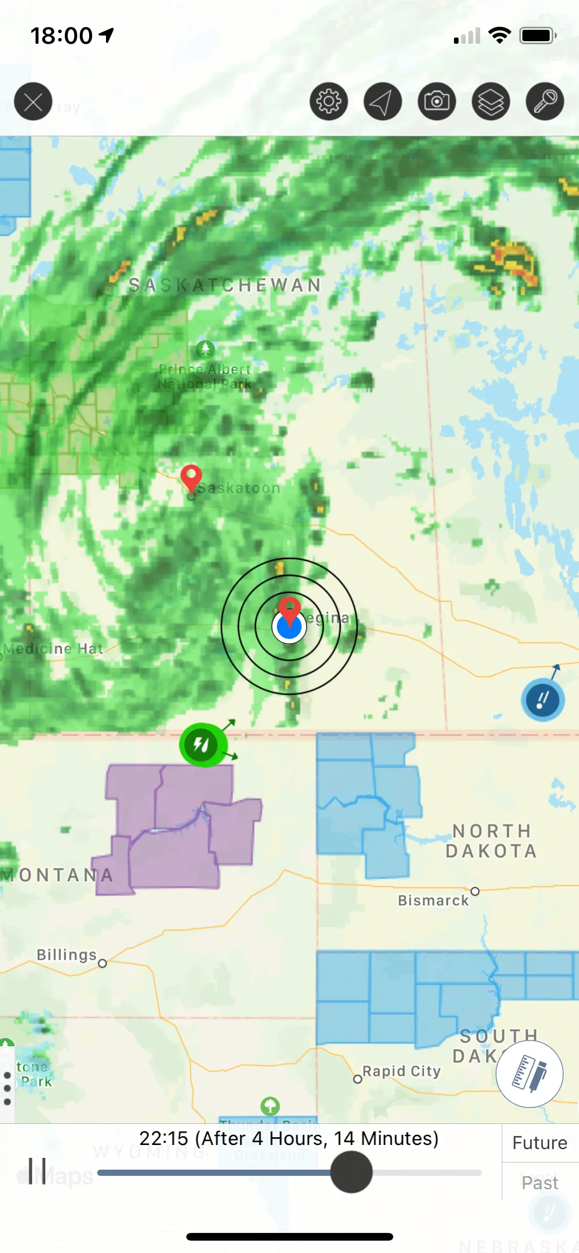 Here’s today’s storm radar. It’s rotating about a centre near Saskatoon that’s slowly moving in a southeast direction.