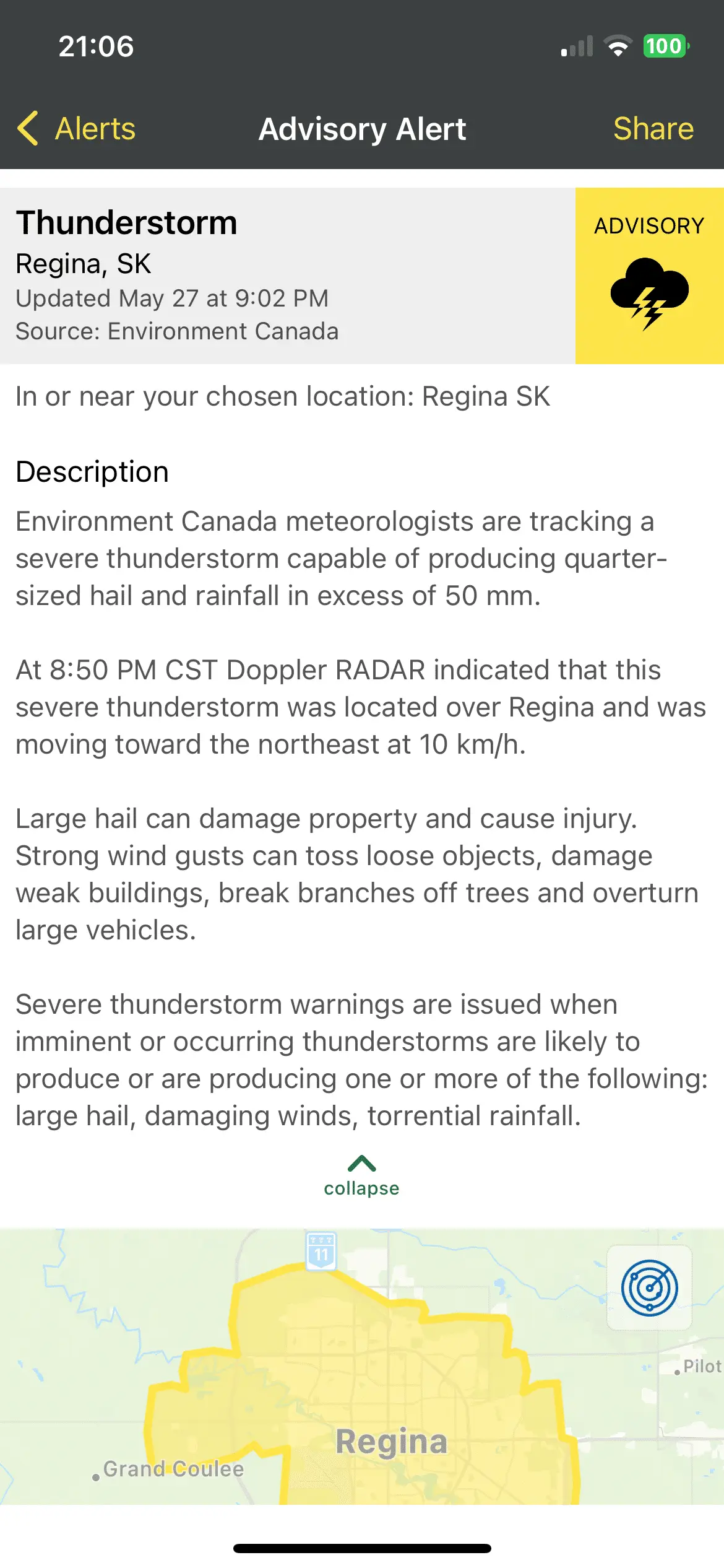 scifan57 Administrator Staff member Joined Sep 24, 2012 Messages 35,087 Reaction score 45,838 Location Regina, Canada May 27, 2023 #5,897 A bad thunderstorm with the possibility of large hailstones has moved in.