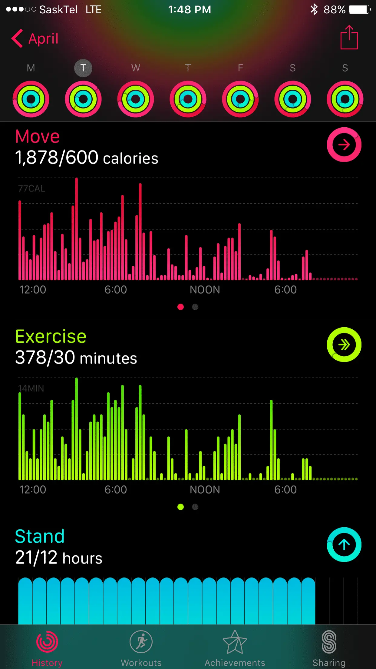 And the Move ring on it's fourth time around!The most I ever had in one day was 378 minutes of excercise. The ring was on its 13th time around.