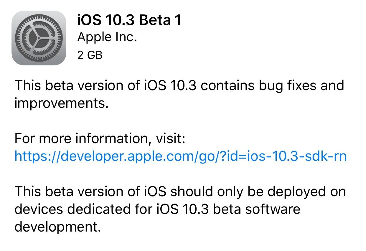 Downloading iOS 10.3 Developer Beta 1.
