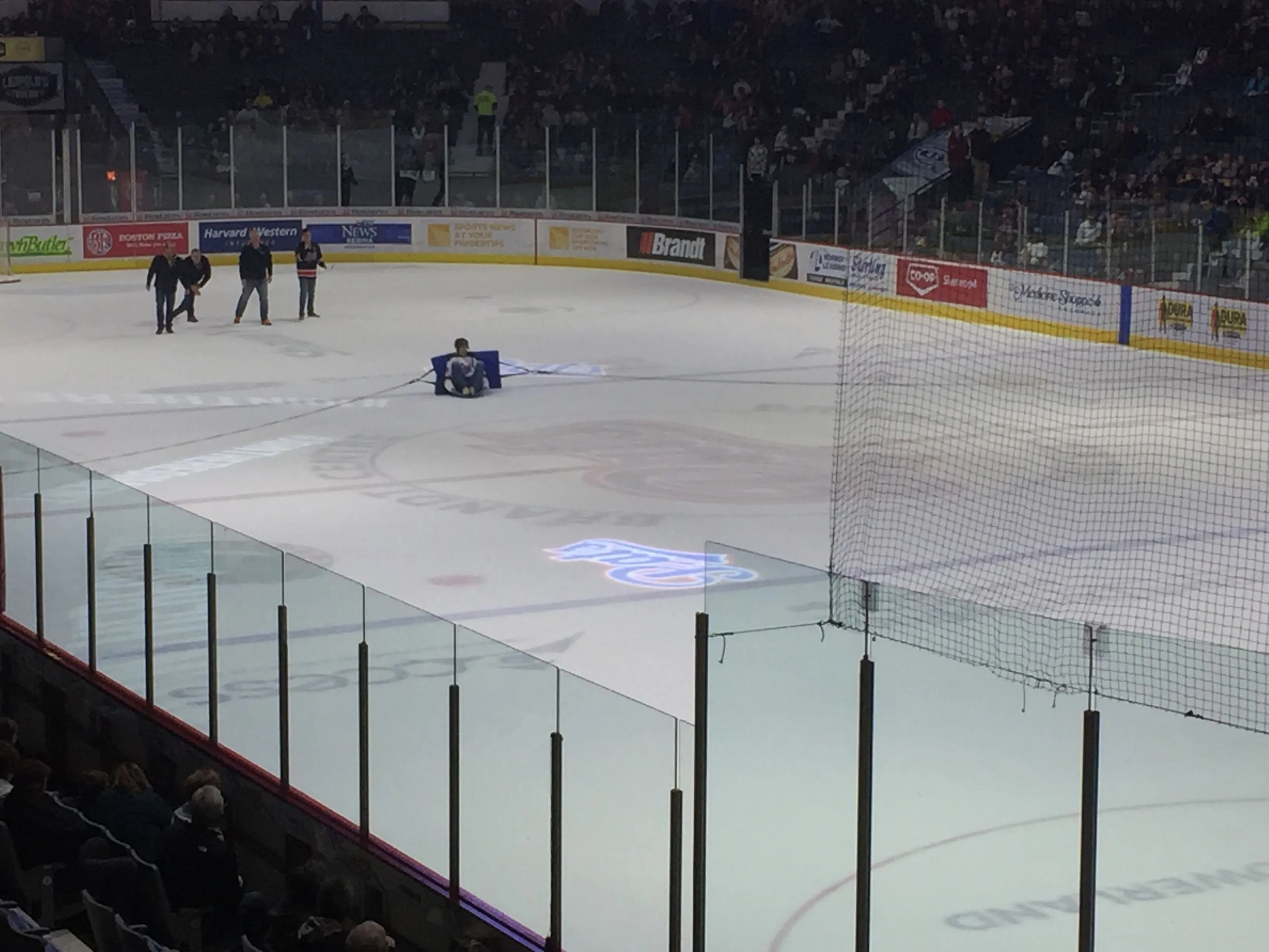 Watching the pre-game warmup at the Pats playoff game. At the end of the regular season the Pats were rated number one in Canada.