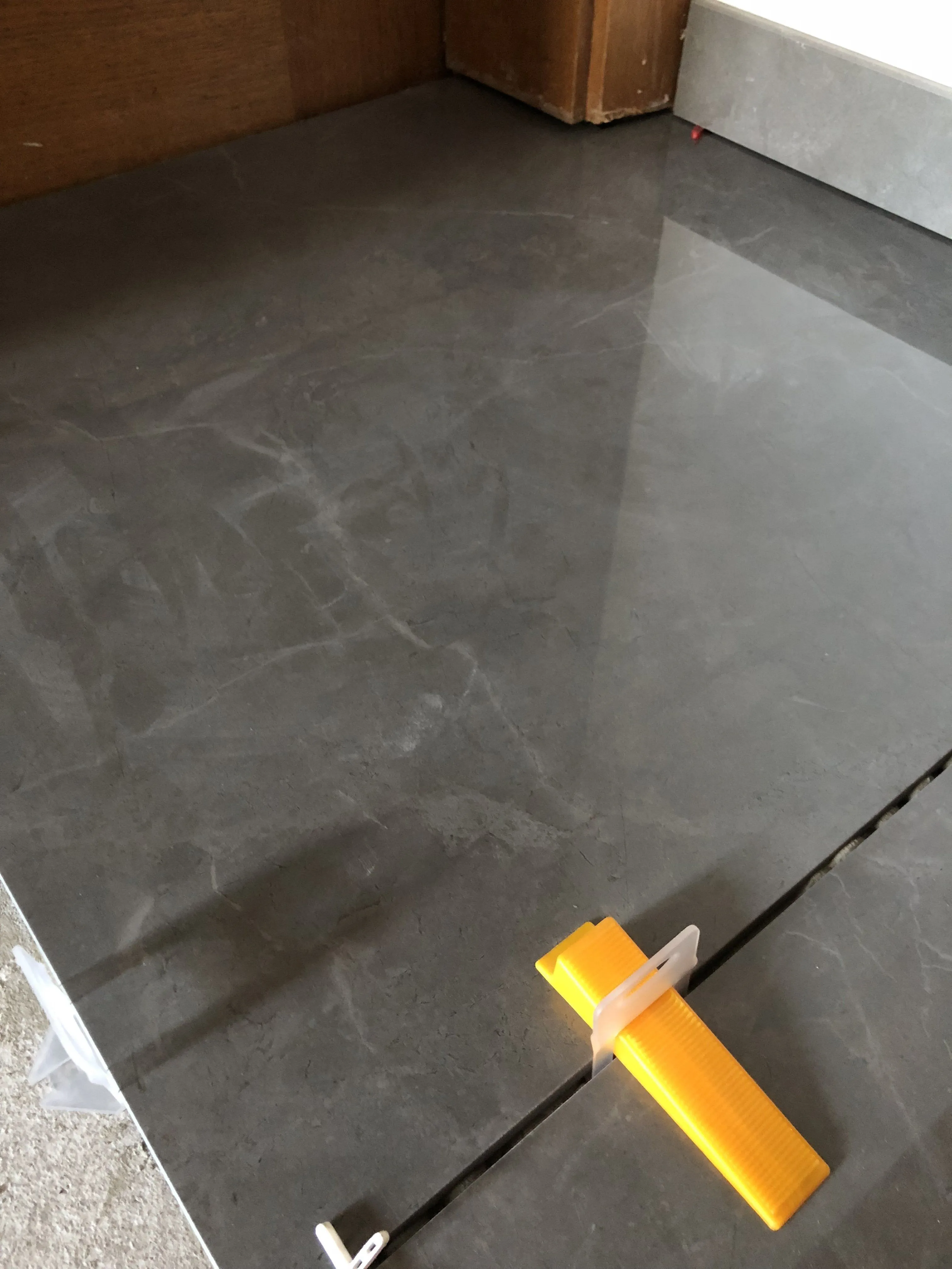 Looks like it will be a very nice floor when it’s done. Is it at an entry door or an entire room?Exactly. They seem to look darker than they really are. They should look like grey marble.