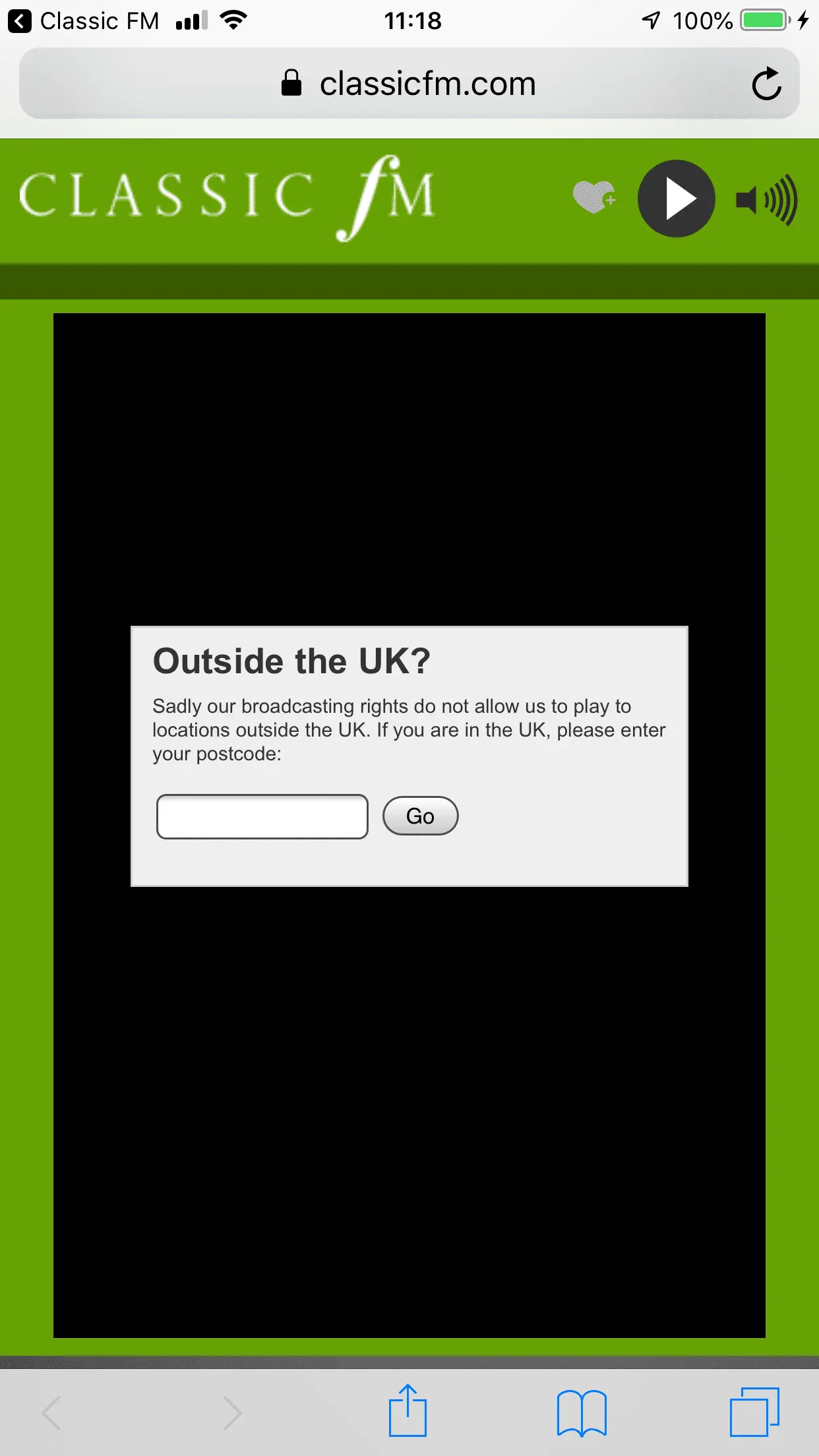One of the articles in the app about the concert has a link to click to listen to the concert. If you click it you'll see this screen.That would be too bad! I was looking forward to it, even without John Williams conducting the LSO.