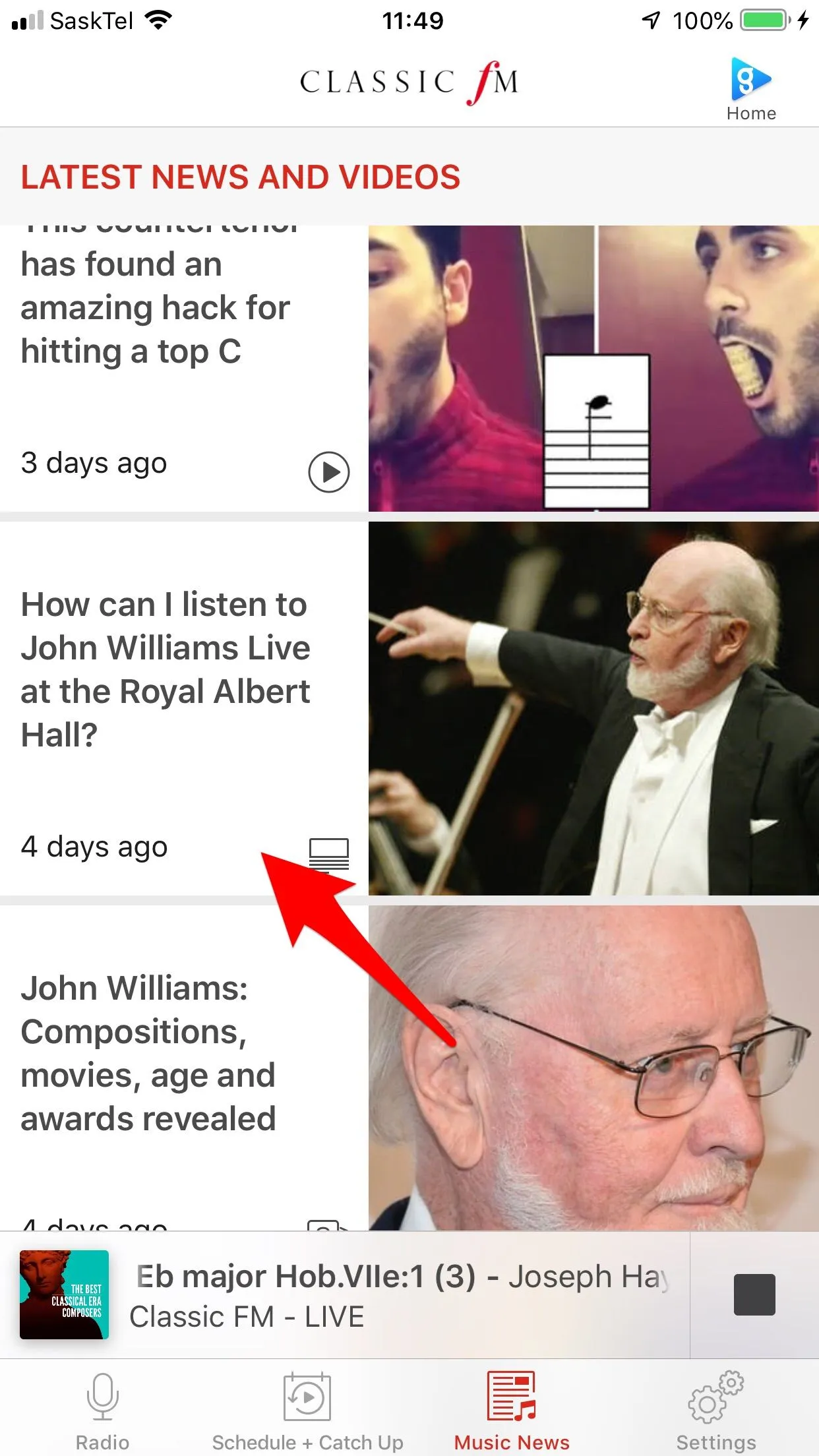 Thank you!One of the articles in the app about the concert has a link to click to listen to the concert. If you click it you'll see this screen.