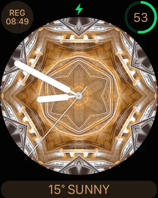 This is the kaleidoscope watch face. You can use the suggested photos or use your own. I used a photo of the gothic vaulting of the nave of Southwark Cathedral in London.