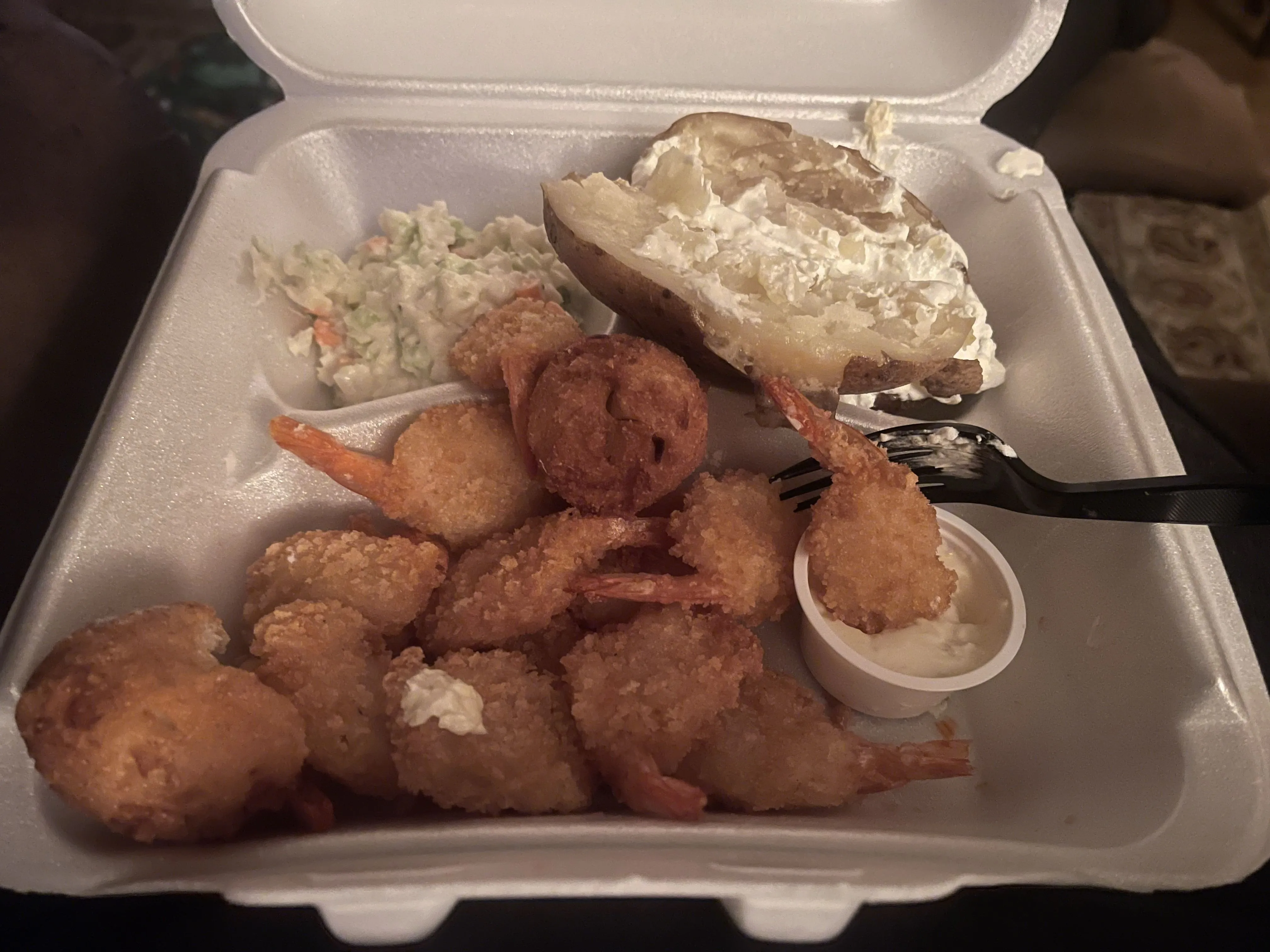 I cheated today, with fried shrimp and baked potato from Captain D's.