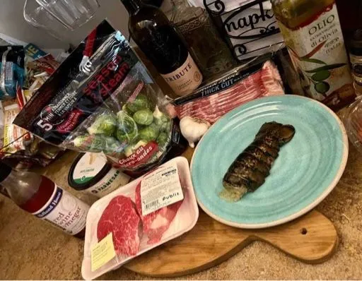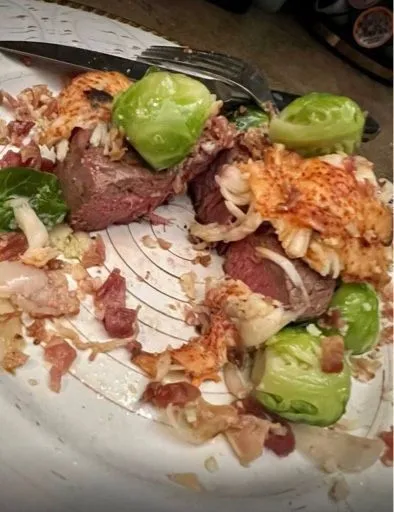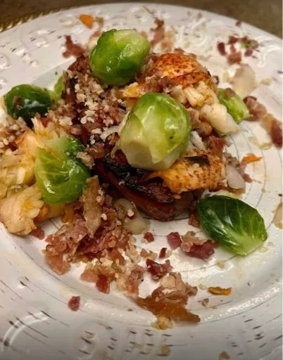 Grilled Lobster [emoji3081] topped filets [emoji3052] with Parmesan Brussel Sprouts [emoji93]