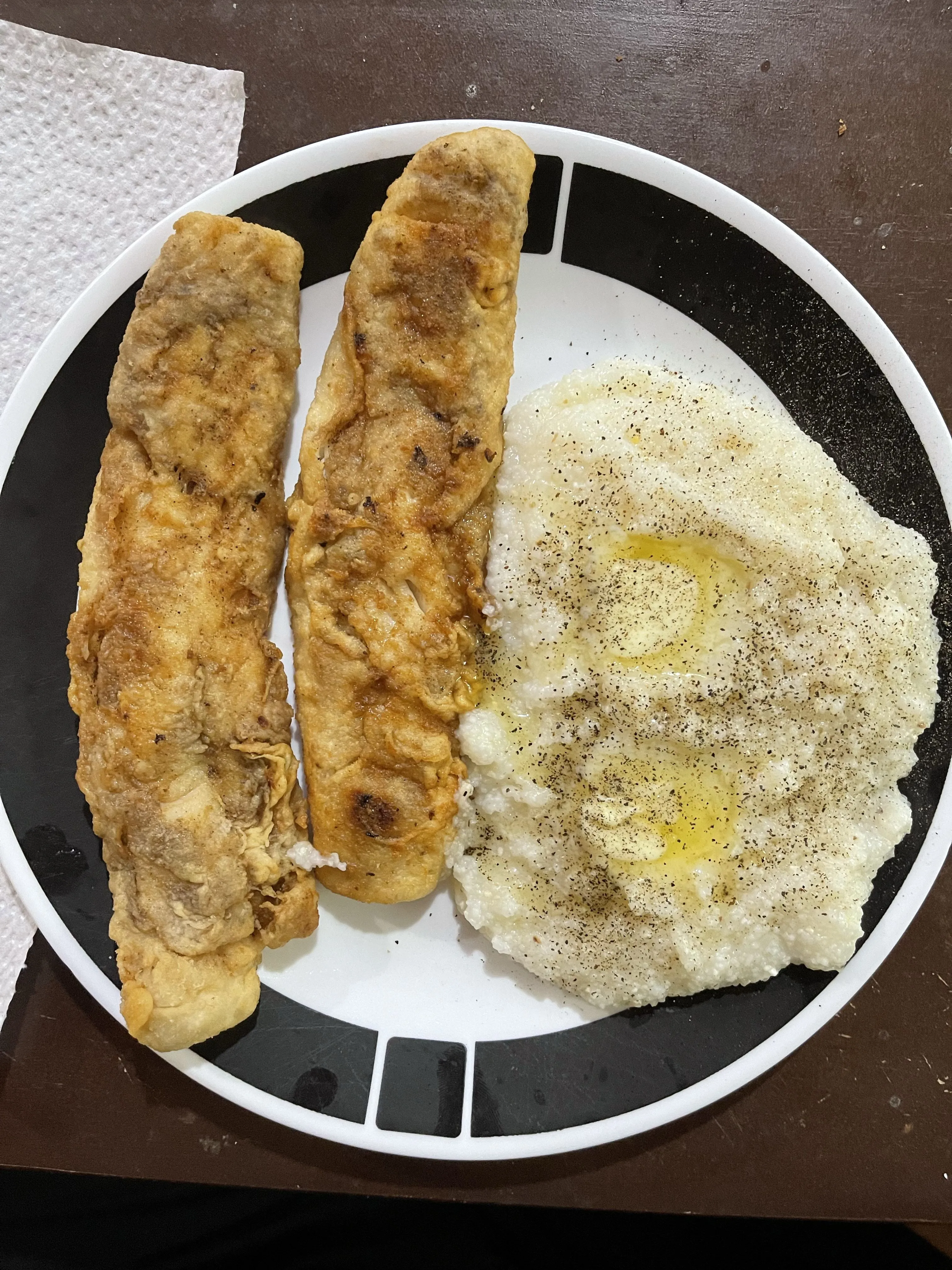 Fried whiting and grits with butter for Dinner