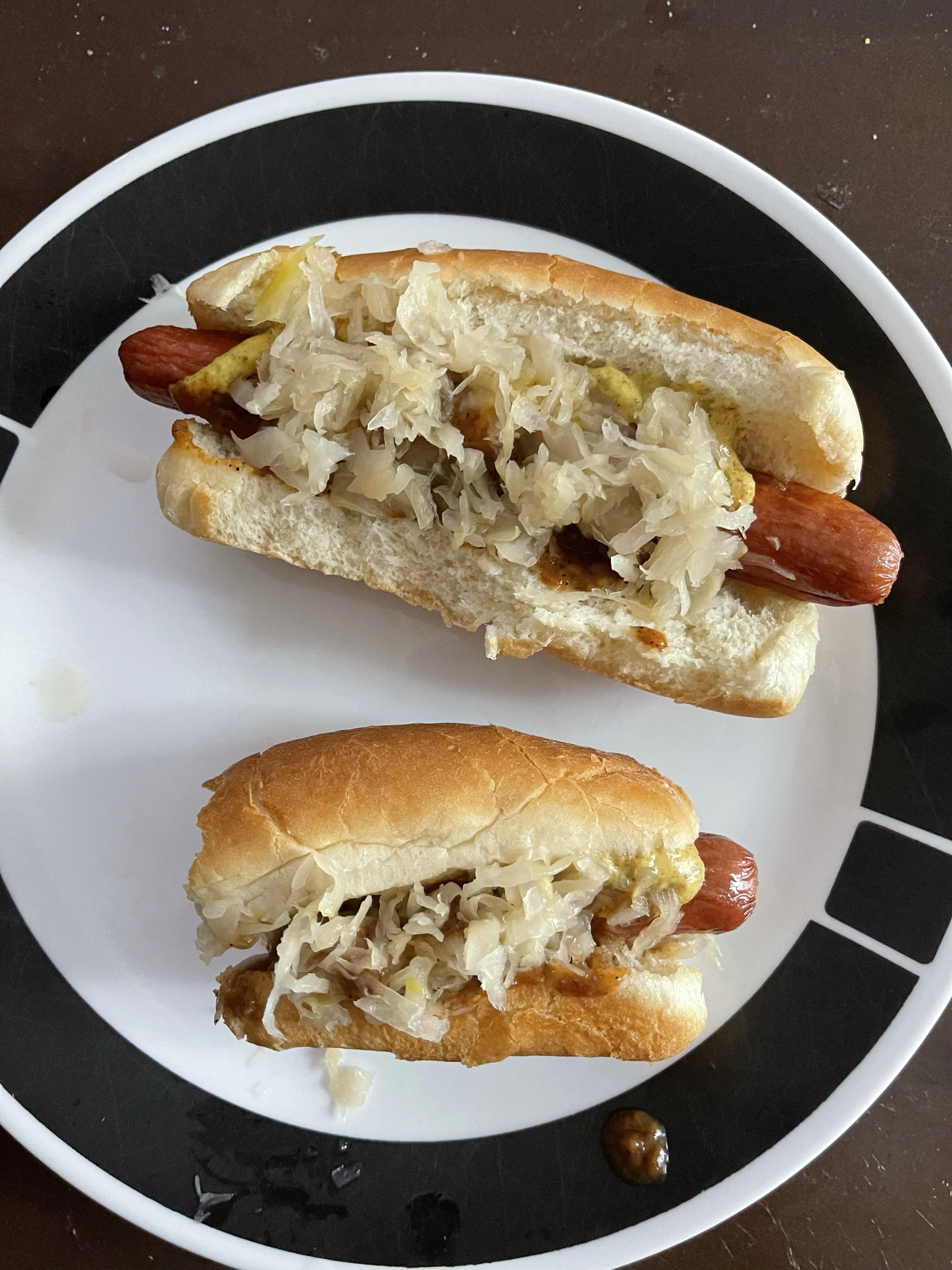 Mustard, chilli and sauerkraut dogs for lunch. Want some?