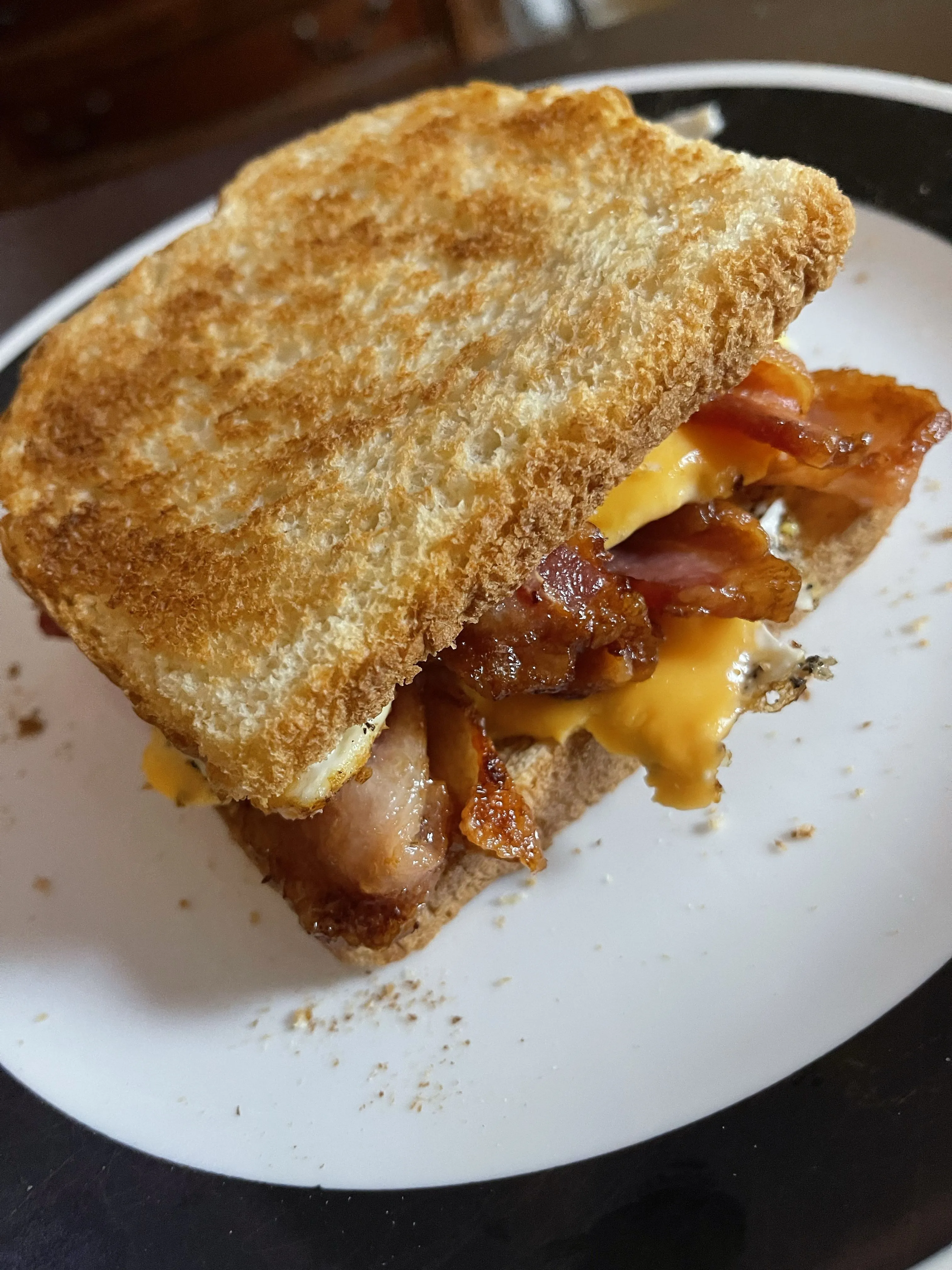Double Egg over hard with Cheese and Double Bacon on Toast with Mayo.